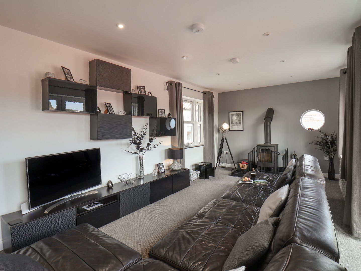 Accomodation Details Three bedrooms: 1 x king-size with en-suite walk-in shower, basin, heated towel rail, and WC, 1 x ground-floor double, 1 x ground-floor twin. Ground-floor bathroom with bath, walk-in shower, basin, heated towel rail, and WC. Kitchen/diner. First-floor sitting room with woodburning stove and Juliet balcony