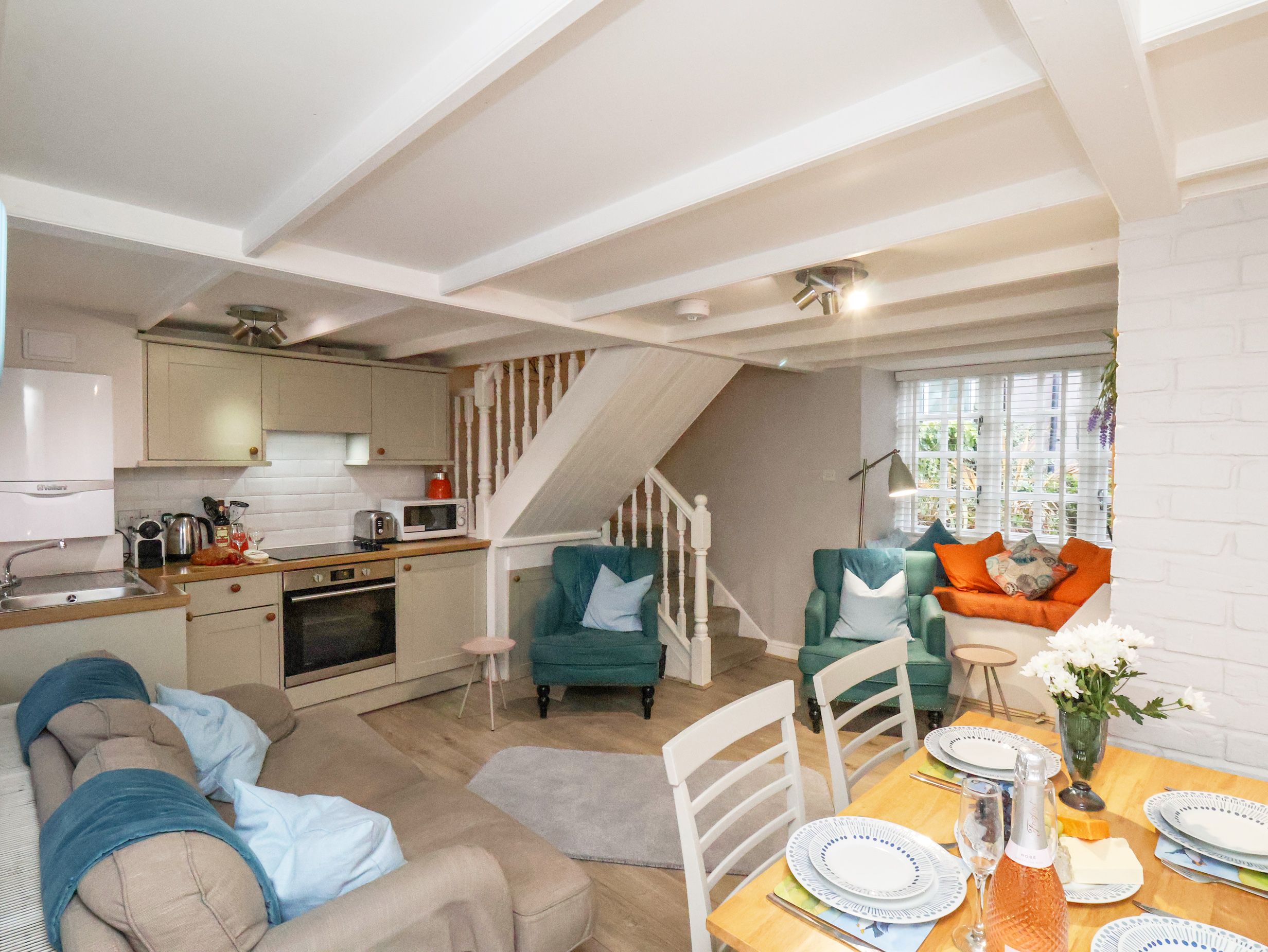 Accomodation Details Over three floors. Two bedrooms: 1 x second-floor king-size with TV, 1 x double. Shower room with walk-in shower, basin, heated towel rail, WC. Open-plan living space with kitchen with dishwasher dining area and sitting area with electric fire