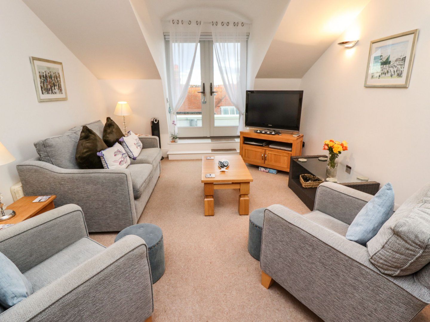 Penthouse apartment with lift. Two bedrooms: 1 x twin room, 1 x double. Bathroom with bath, shower over, basin and WC. Open-plan living space with kitchen, dining and sitting area. Balcony with superb views over Whitby. Designated parking for one car