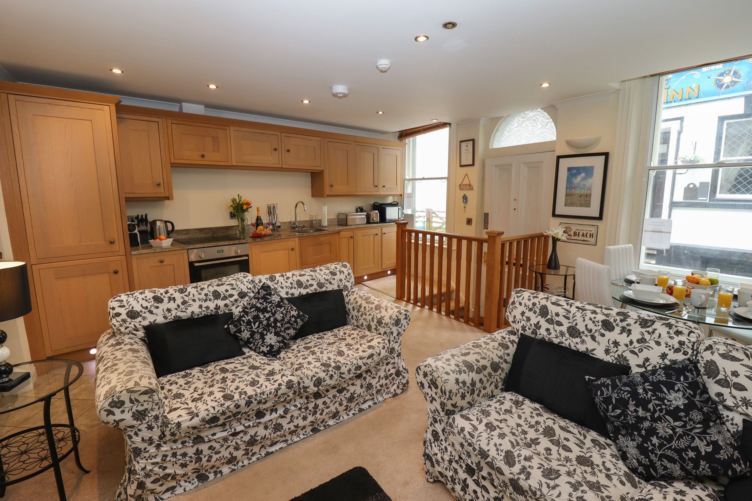 Amenities Central heating. Electric oven, induction hob, microwave, fridge/freezer, washer/dryer, dishwasher, coffee maker. 3 x TVs, WiFi. Fuel and power inc. in rent. Bed linen and towels inc. in rent. Sorry, no pets and no smoking or vaping. Beach 0.3 miles. Shops, cafes, restaurants, pubs and harbour 0.1 miles. Note: There is no garden. Note: There are two steps up to the property. Note: There are a two steps to the shower room and bedroom area. Note: There is one step down to the walk-in shower. Note: Not suitable for pushchairs or wheelchairs