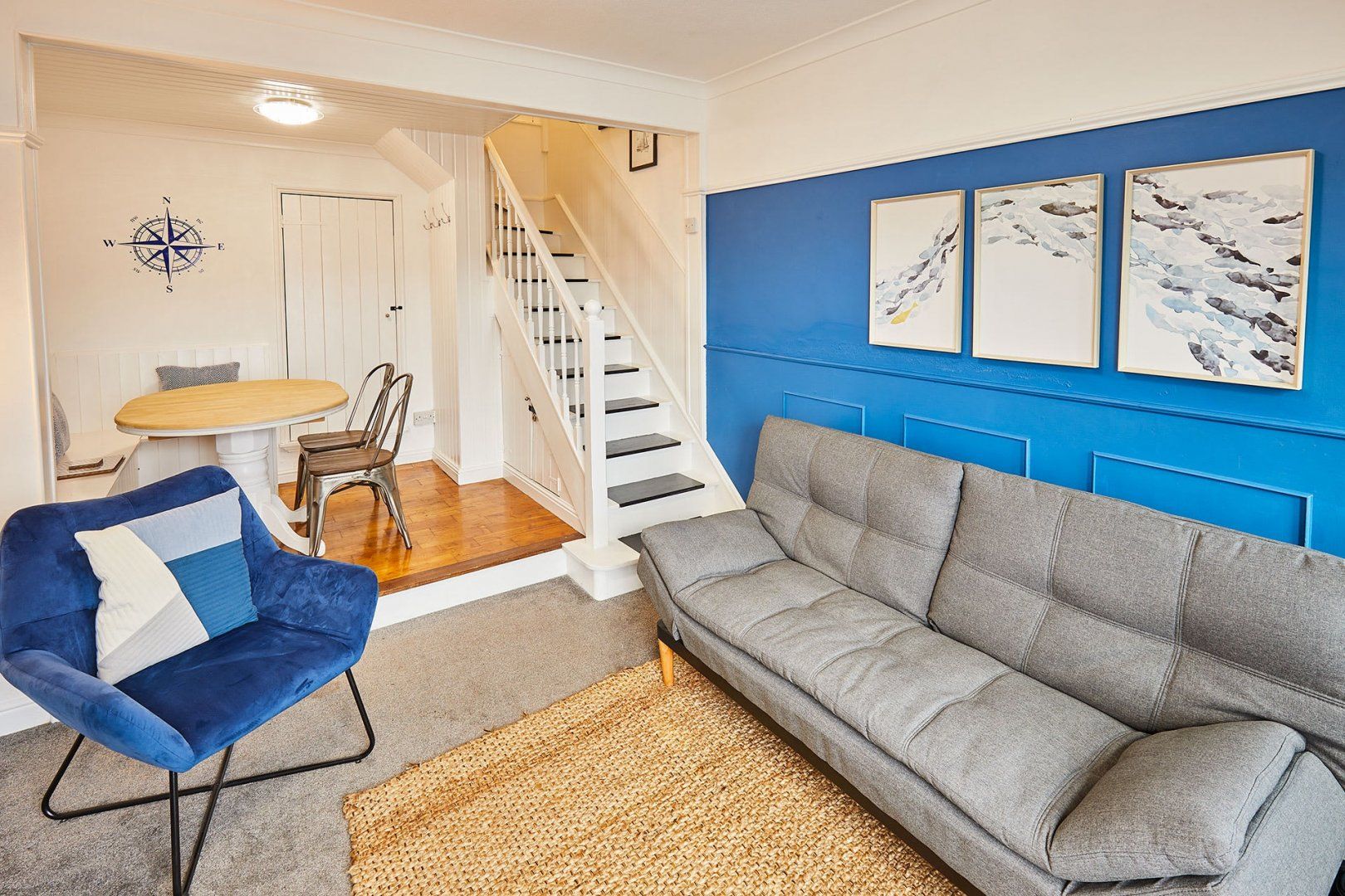 Enjoy a glass of wine on the front patio with its pots of colourful flowers – we loved the smell of the sea air out here. Later, relax in one of two living rooms with ocean blue colour scheme – read a book on the comfy leather armchair or take in the views over the town from the upper floors.