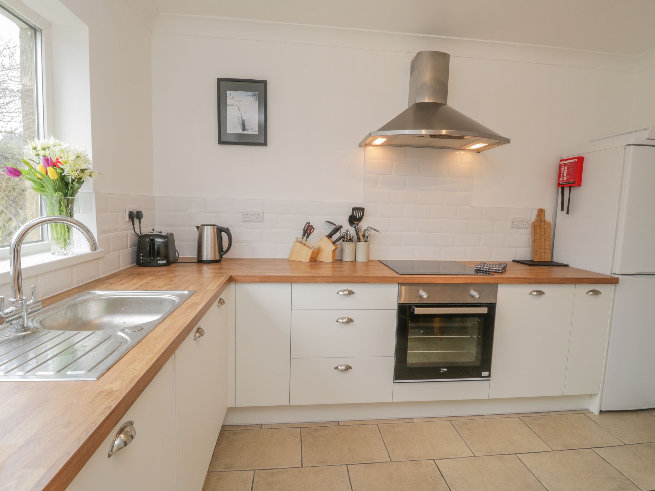 Amenities Oil central heating with electric oven and hob, microwave, fridge/freezer. washing and Dishwasher, TV, Fibre Broadband WiFi, a selection of books. Fuel, power and starter pack for woodburning stove inc. in rent. Bed linen, towels and Hairdryer inc. in rent. Parking. Enclosed rear garden with lawned area, gravelled area, patio, furniture and lockable bike storage. One well-behaved dog welcome. Sorry, no smoking. Shop 1.3 miles, pub 2.5 miles, beach 2.7 miles. Note: There are steps leading up to the property, please take care