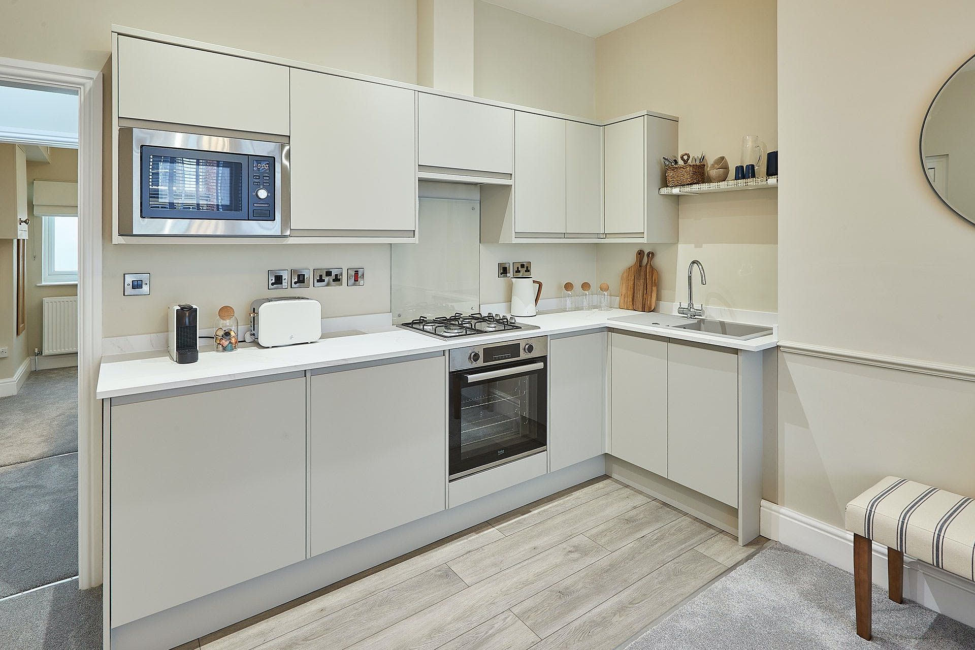 Perfect for a romantic retreat in Whitby, this apartment is conveniently located for beach trips, dining out, and shopping. The beach is just a five-minute walk away, ideal for windswept walks and fish and chip lunches. The shops, cafes, and restaurants of the town centre are only ten minutes away, too. The apartment is simple in style, with a fuss-free, comfortable living room and open-plan kitchen. We like the bay window dining area, where you can watch passersby while eating your breakfast.