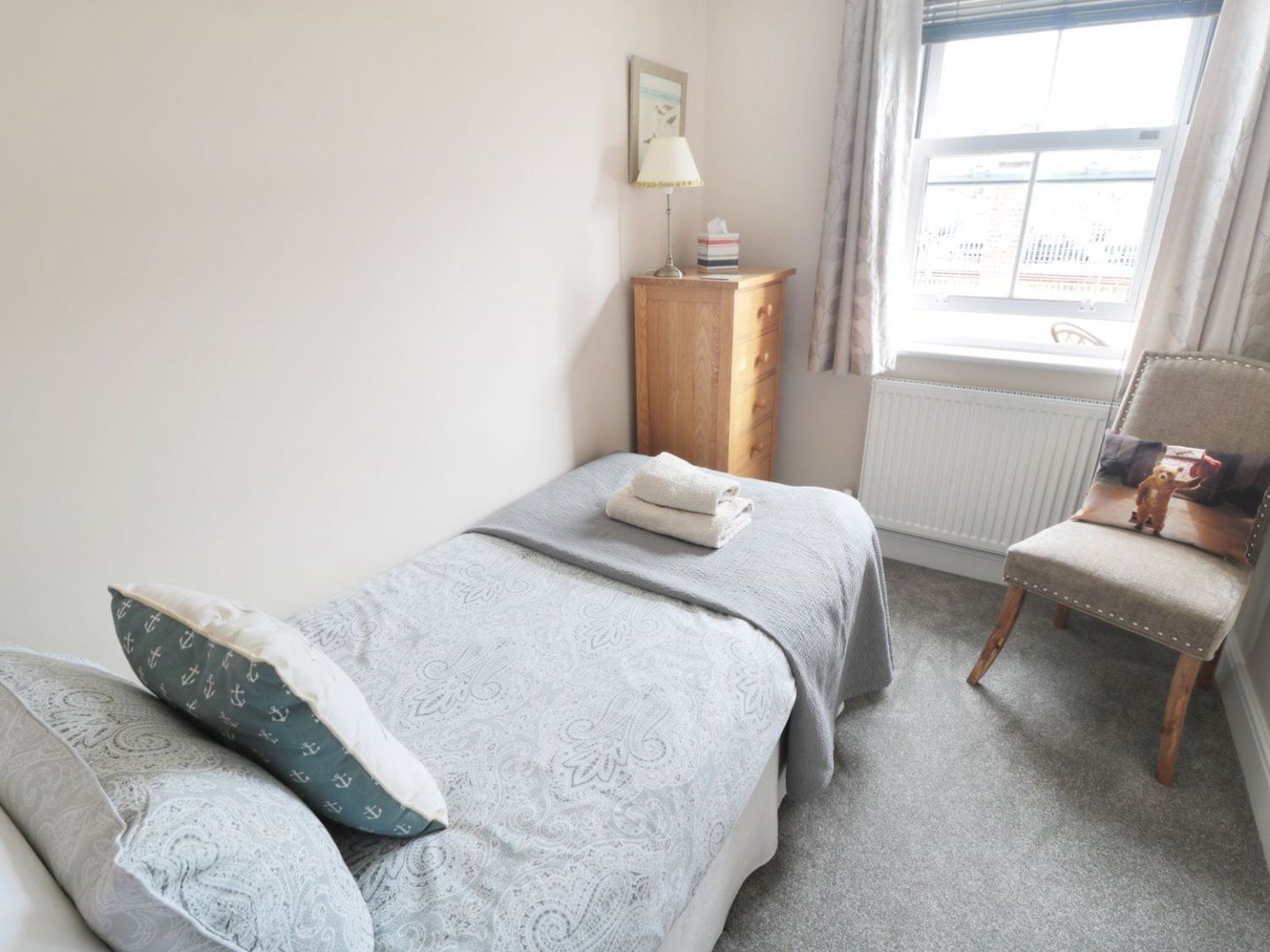 Amenities Gas central heating. Electric oven, electric hob, microwave, fridge/freezer, washing machine, dishwasher, Smart TV with Freeview, DVD Player and WiFi. Fuel and power inc. in rent. Bed linen and towels inc. in rent. Off-road parking for one car. Garden with patio and lawn with furniture. Sorry, no pets and no smoking. Shop 0.2 miles, pub 0.3 miles. Note: This property sleeps a maximum of three guests