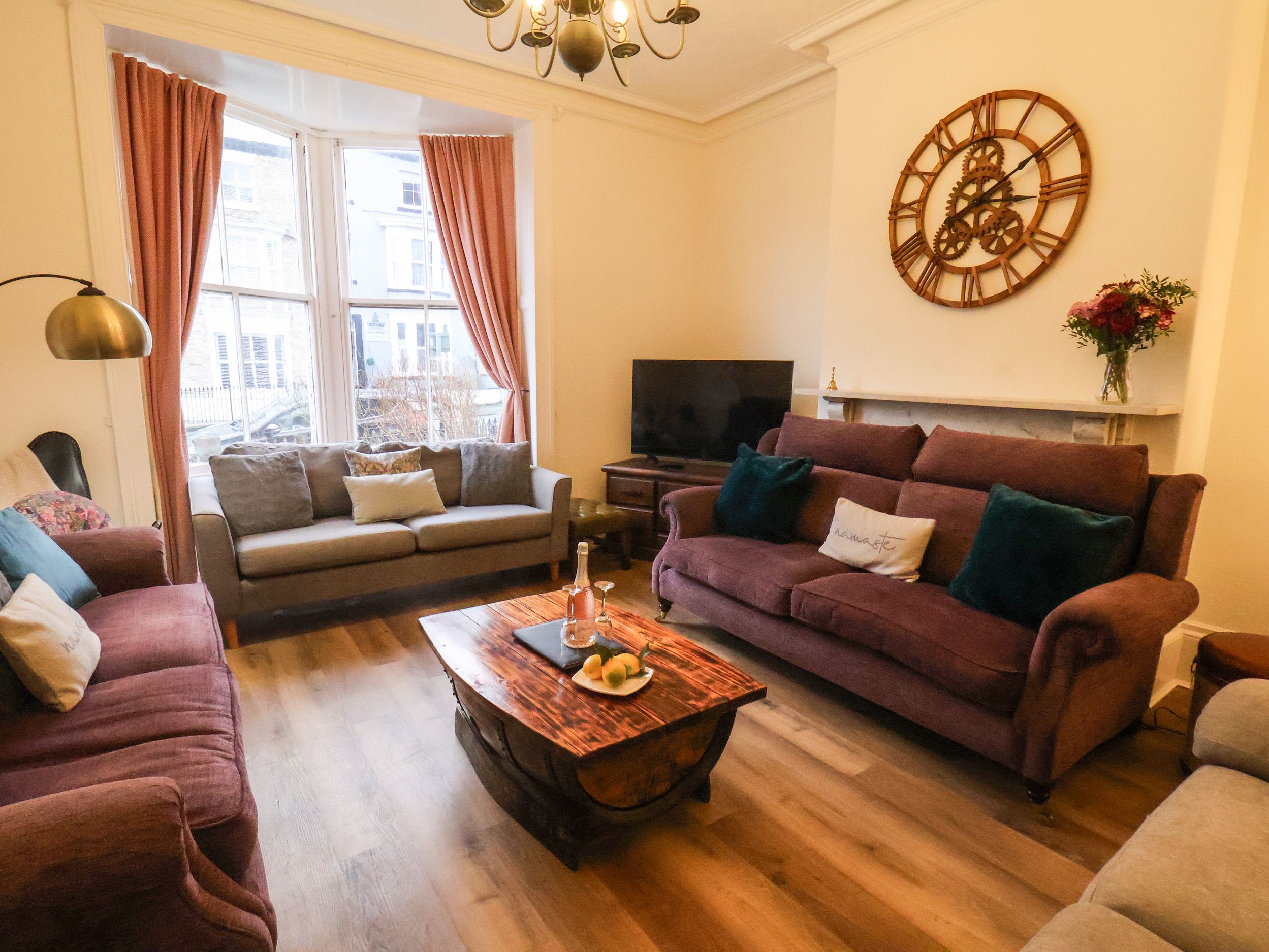 Accomodation Details Over four floors. Seven bedrooms and 7 bathrooms: Downstairs toilet and shower. First Floor: Bed 1 King size, Bed 2 Double,Bed 3 Double. Second floor: Bed 4 Super king, Bed 5 Twin beds. Third floor: Bed 6 Double, Bed 7 Small double. Shower room with walk-in shower, basin, heated towel rail and WC. First-floor cloakroom. Kitchen. Dining room. Sitting room. Garden room.