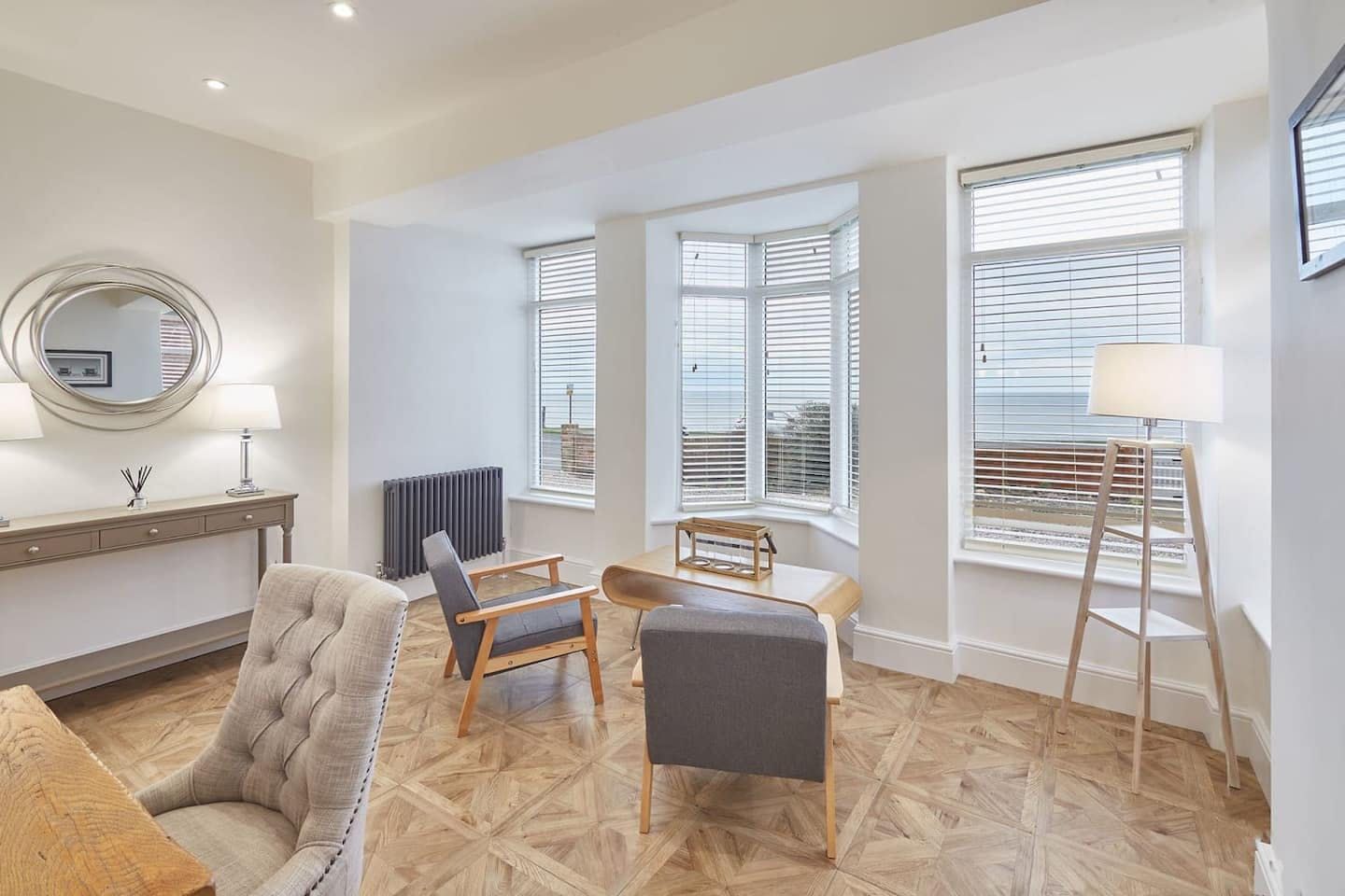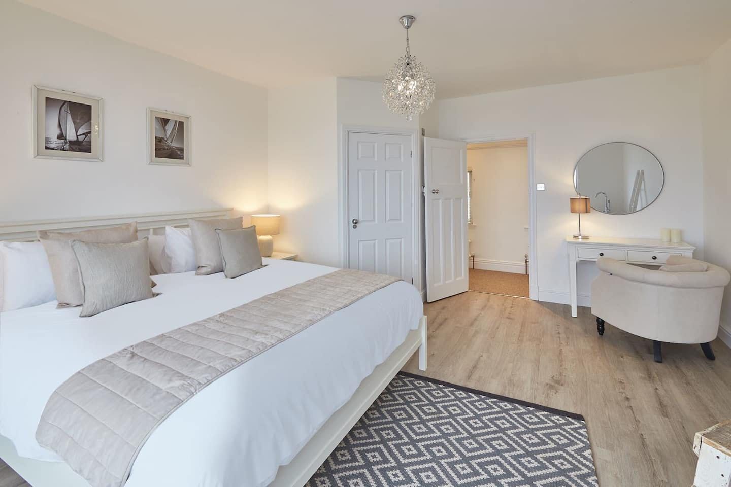You'll find this sleek home just moments from Whitby Beach. It's bright, tranquil and homey, made even better by the sea views out the big bay windows. In the living room, there's a cosy fireplace for chilly evenings and plenty of plush seating to sprawl out on. But the kitchen is the heart of this home – with a huge dining table and marble countertops offering lots of prep space, this is where families can hang out and reminisce over delicious home-cooked meals. Open the French doors and step onto the private garden, where you can sit with a glass of wine while kids and pups run in the yard. Upstairs, there are five comfortable bedrooms, the star of which is the sumptuous master. After a day at the beach, sink into the lush freestanding tub and watch the waves break on the shore – some guests have even seen dolphins swimming in the water. Best of all is the location. It's up on the West Cliff, looking out over the beach and the North Sea. A short stroll down the hill gets you to Whitby's main drag, where the arcades, fish and chip shops and pubs evoke an old-fashioned, seaside charm. The famous Abbey, part of the inspiration for Bram Stoker's Dracula, is a twenty-five-minute walk away – it's a bit of a climb, but trust us, the views over town are totally worth it.