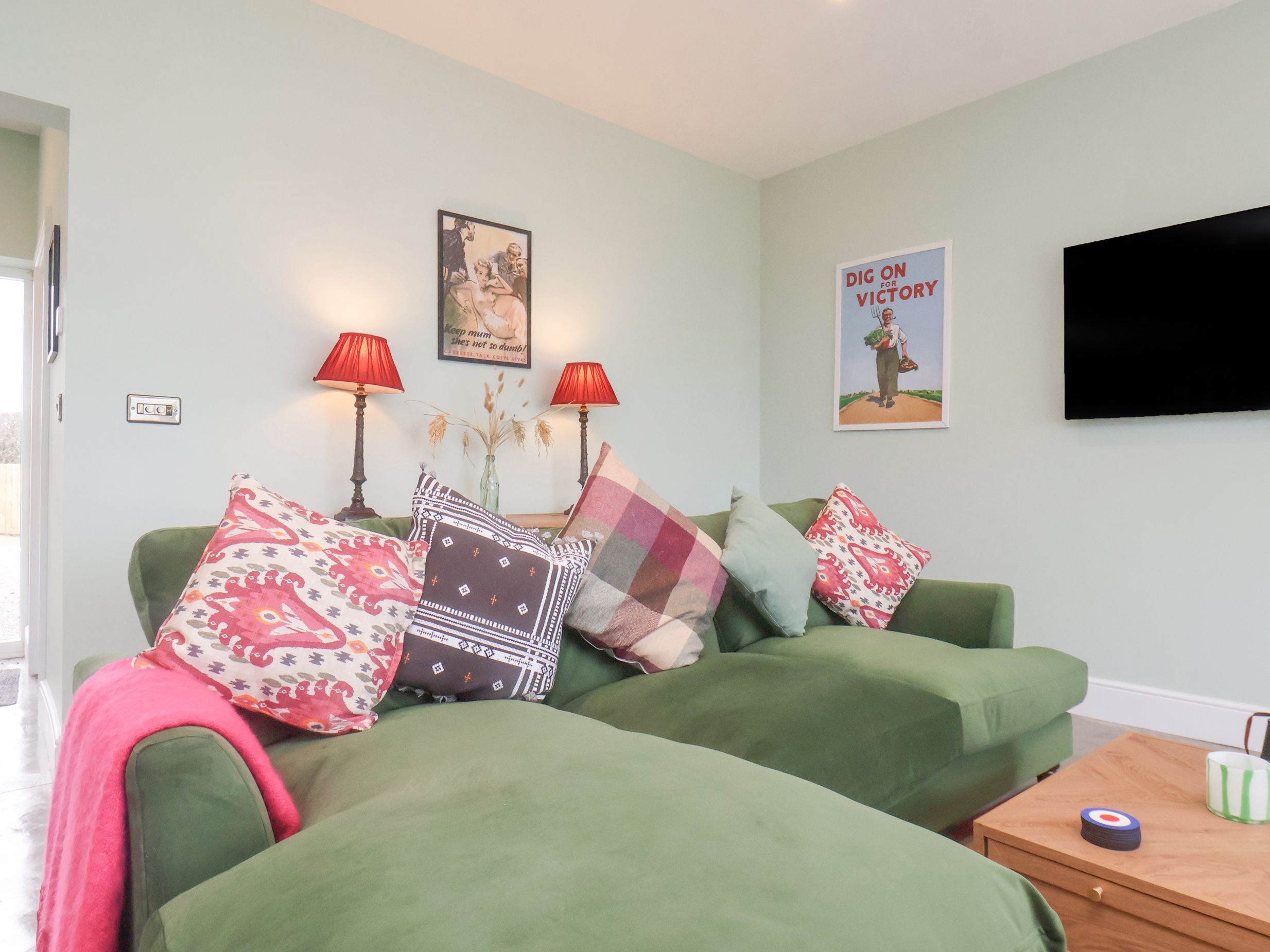 Holiday home The Old Guard House has five bedrooms: a ground-floor zip/link super-king with woodburning stove and Smart TV, a ground-floor double room with jack-and-jill access to bathroom, and three king-sized rooms, one with an en-suite shower. There's a shower room and an open-plan living space with kitchen with electric oven and hob, microwave, fridge/freezer, dishwasher, kettle, coffee machine and toaster, dining area, and sitting area with a woodburning stove and Smart TV. Amenities include oil central heating, underfloor heating, washer/dryer, starter pack for woodburning stove, highchair and travel cot. Off-road parking for four cars, enclosed wraparound garden with rear lawn, patio, furniture, hot tub, and a roof terrace with furniture. Two well-behaved dogs are welcome. Sorry, no smoking. Shop in 1.6 miles, pub in 0.1 miles. The Old Guard House is the perfect base for a family getaway. Note: Check-in is from 4pm, check-out by 10am