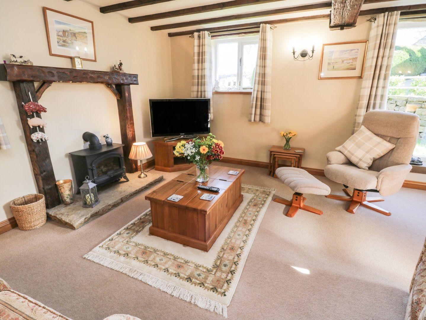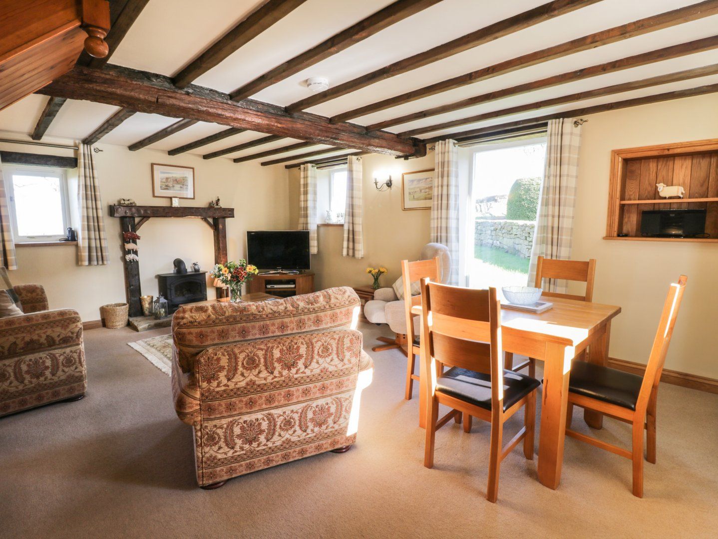 We especially loved sitting on the patio with a glass of wine/tea/coffee/cider and admired a stunning scenery, it was very helpful that Sykes had arranged brilliant weather for our stay!!! The only drawback was that it was a way out of the village for walking to the local pub and shops, very steep hills. We were able to get about via the local taxi service when we didn't want to drive ourselves. The local butchers was a gold mine and we came home with a freezer box full of beautiful meat locally sourced, absolutely wonderful selection.