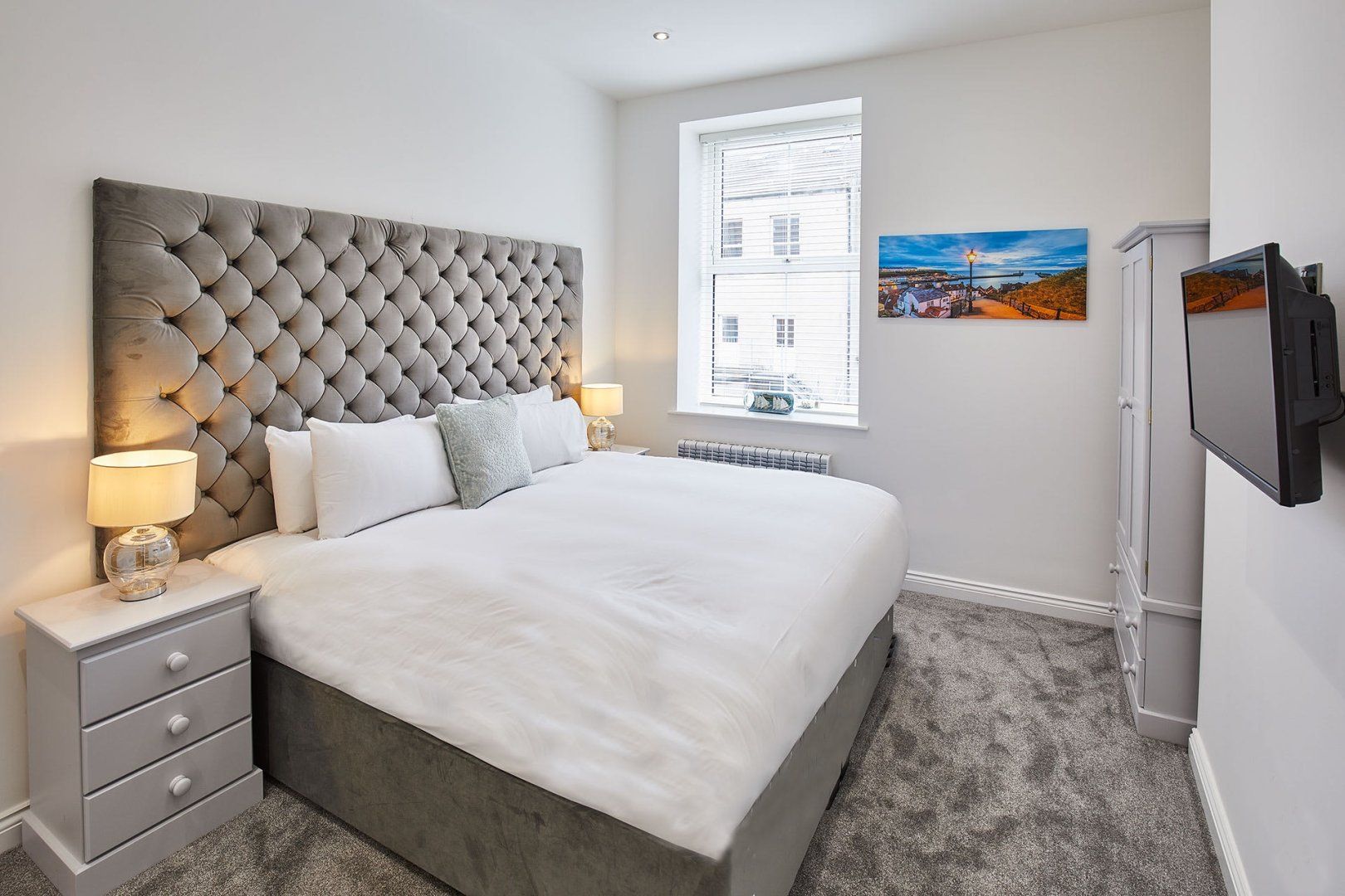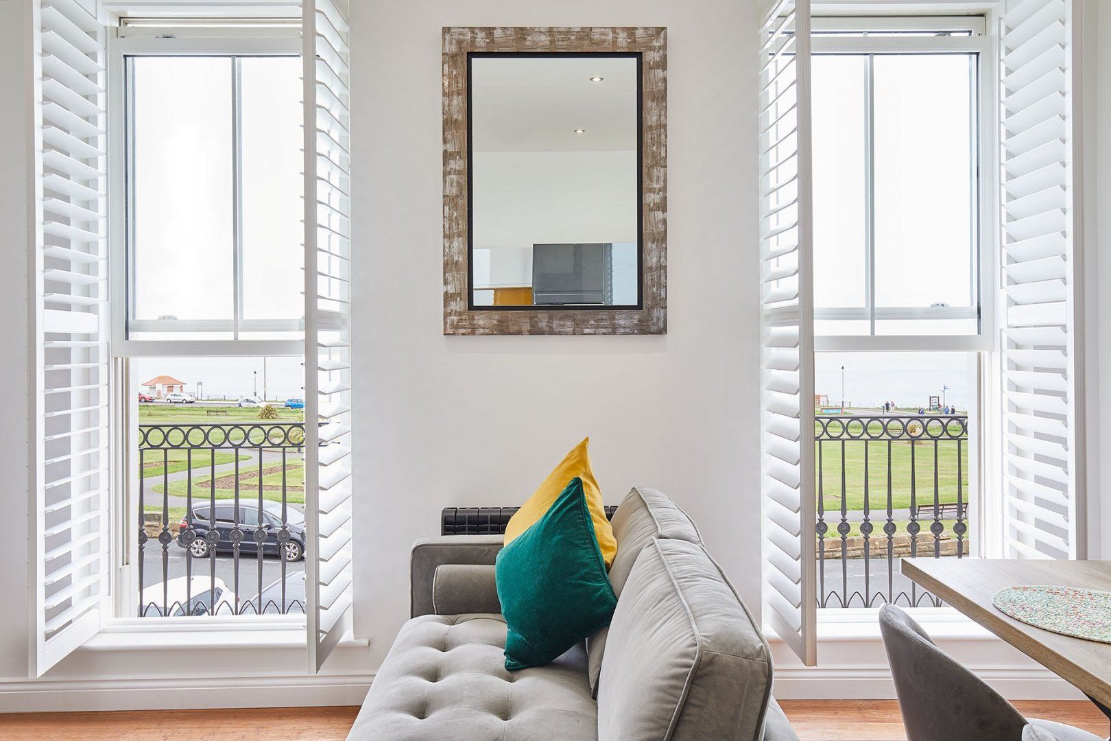 Light-filled and brimming with contemporary comforts, this home's interiors are primed for relaxation. We're particularly smitten by the open-plan living space with its high ceilings and huge sash windows looking out to sea. After a restful slumber in the sumptuous bedrooms, open the shutters to usher in the crisp sea breeze and the sound of waves splashing against the shore. Spend mornings snuggled up on the velvet sofas with a cup of tea and prepare breakfast in the fully-equipped kitchen before a day of adventure. Nestled in the heart of Whitby, you're perfectly positioned to do so, just ten minutes from the bustling centre on foot and a fifteen-minute stroll across the river from the cobbled old town.