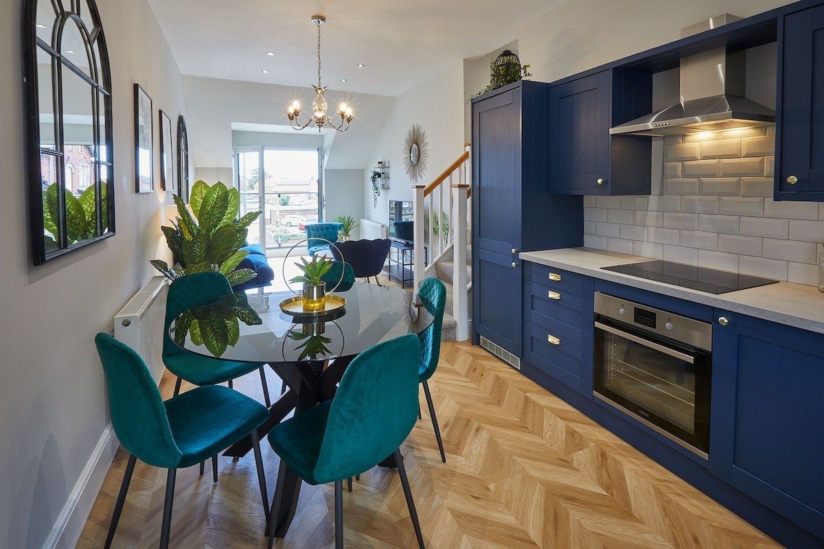 We hate to say it, but you'll most definitely have the Whitby blues after embarking on a fun-filled stay in this gorgeous seaside home. The styling alone is enough to have you in awe, let alone its quintessential English seaside resort location. High-quality furnishings with contemporary touches throughout creating a bright and breezy space to relax in after a day out on Whitby Beach – just a fifteen-minute stroll away. Bold blue tones are a breath of fresh air (pardon the pun) and remain the dominant colour palette throughout the space. While parquet wooden flooring and velvet textures inflict sophisticated finishing touches to each room. Whether you're in town with friends or family or even on a work trip, from here you can also easily explore the North York Moors National Park – just a five-minute drive away. At the end of the day, you'll be warmly welcomed back at home by the bathroom's freestanding tub and the cosy living room setting.