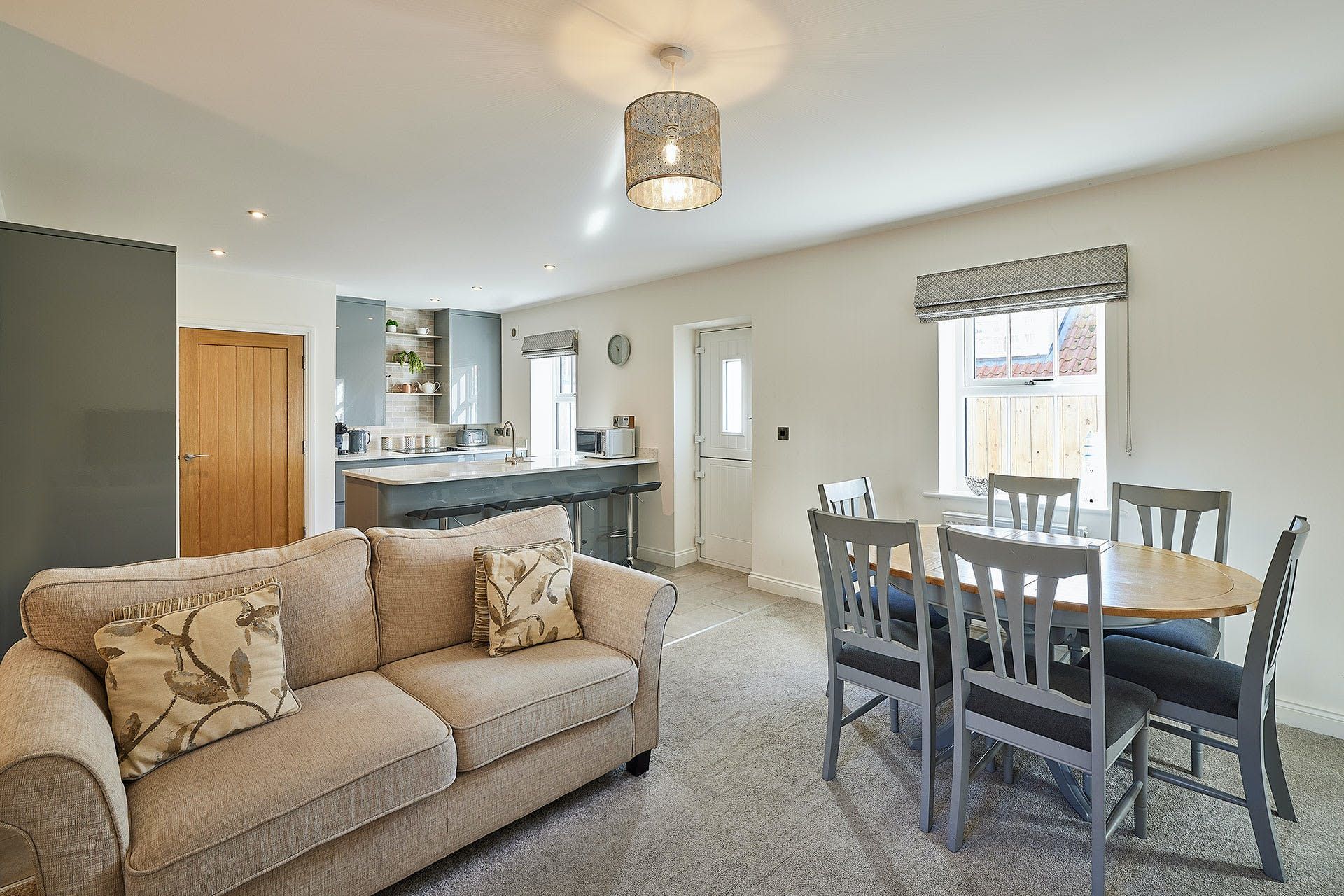 Soda Cottage is a modern self-catering holiday home located on the East side of Whitby in Hoggarths Yard. This luxury four bedroom, two bathroom property has been beautifully furnished to provide a comfortable and relaxing stay. Guests can immerse themselves in the coastal atmosphere and enjoy the charm of this seaside retreat. The cottage features a private enclosed courtyard, providing a tranquil sun-drenched space for relaxation. Additionally, allocated parking on-site ensures convenience for guests exploring the bustling streets of Whitby town centre, just a short stroll away. Soda Cottage offers the perfect base to explore everything Whitby has to offer, combining modern comforts with the idyllic coastal setting.