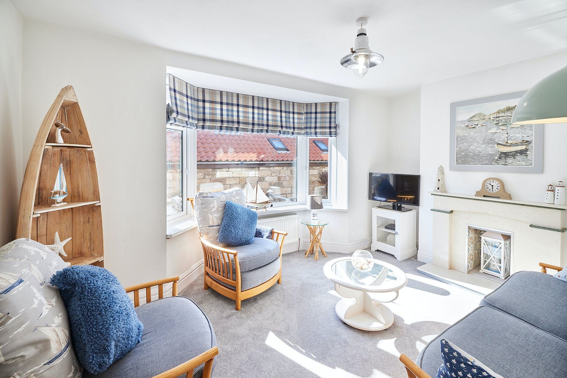 This delightful holiday home is located on the west side of Whitby, close to West Cliff beach. Skinner Street, with its plethora of shops, pubs, and eateries, is only one minute away, making this a convenient base – we think this is a great choice for a family seeking a cosy coastal home-from-home. There are nods to the seaside setting throughout the home, with blue hues and charming artwork. We love the bay windows in the living room, and the patio garden where you can enjoy sunny weather.