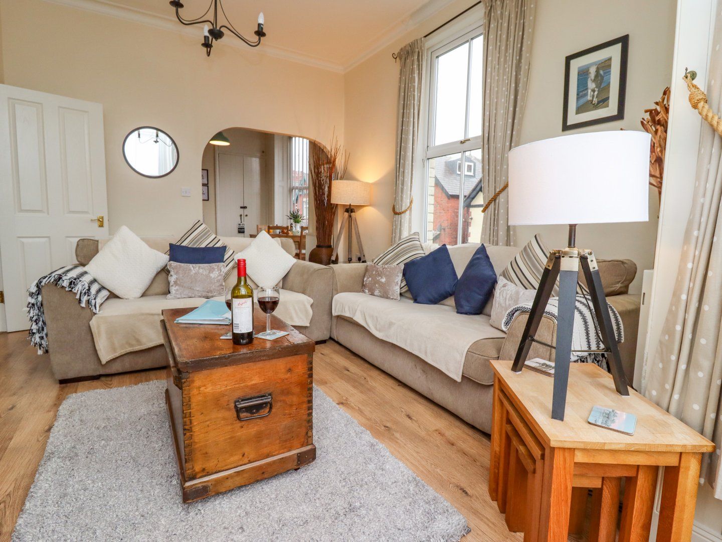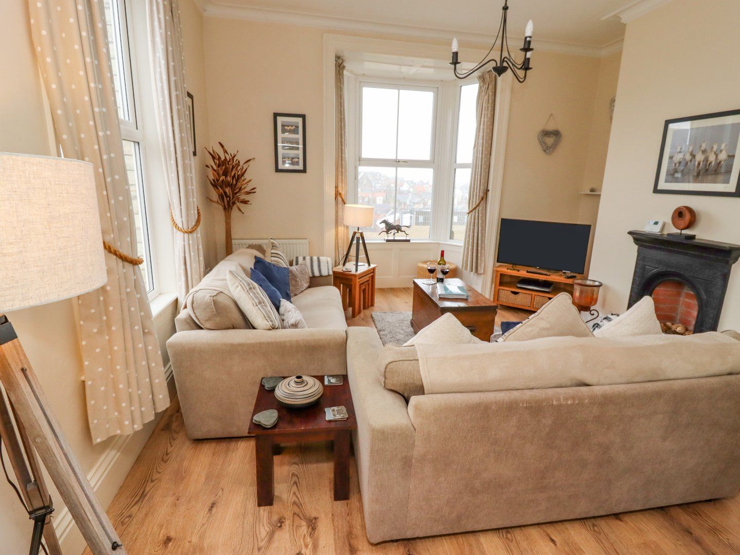 Accomodation Details Second-floor apartment. Two bedrooms: 1 x double, 1 x bunk. Bathroom with bath, shower over, basin, heated towel rail, and WC. Open-plan living space with kitchen, dining area and sitting area