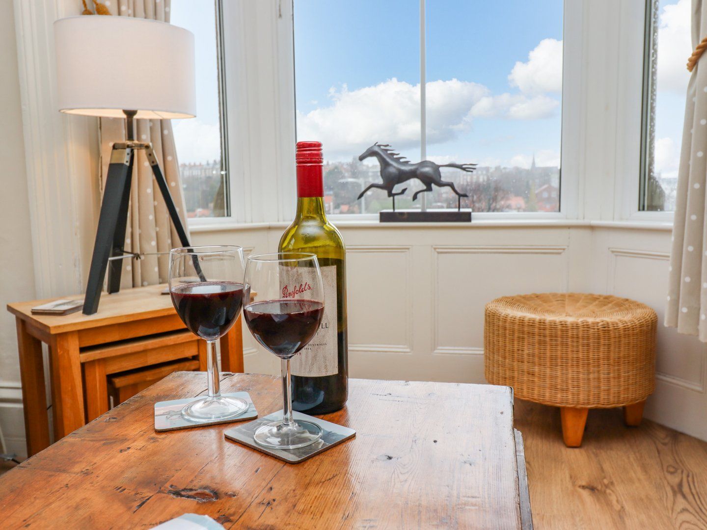 Holiday home The living areas in this second-floor apartment consist of an open-plan kitchen, dining area and sitting area with an electric oven and hob, microwave, fridge/ with ice box, dishwasher, and TV with FreeSat and Amazon Firestick. The bedrooms consist of a double and a bunk room, along with a bathroom. Outside there is roadside parking, on a first come, first serve basis. One well-behaved dog welcomed, but sorry, no smoking. You'll find a shop in 0.1 miles, a pub and Rover Esk in 0.2 miles, and the beach in 0.5 miles. WiFi, fuel, power, bed linen and towels are all included in the price. Highchair and travel cot available. White Horses is well-positioned to enjoy North Yorkshire as a family.