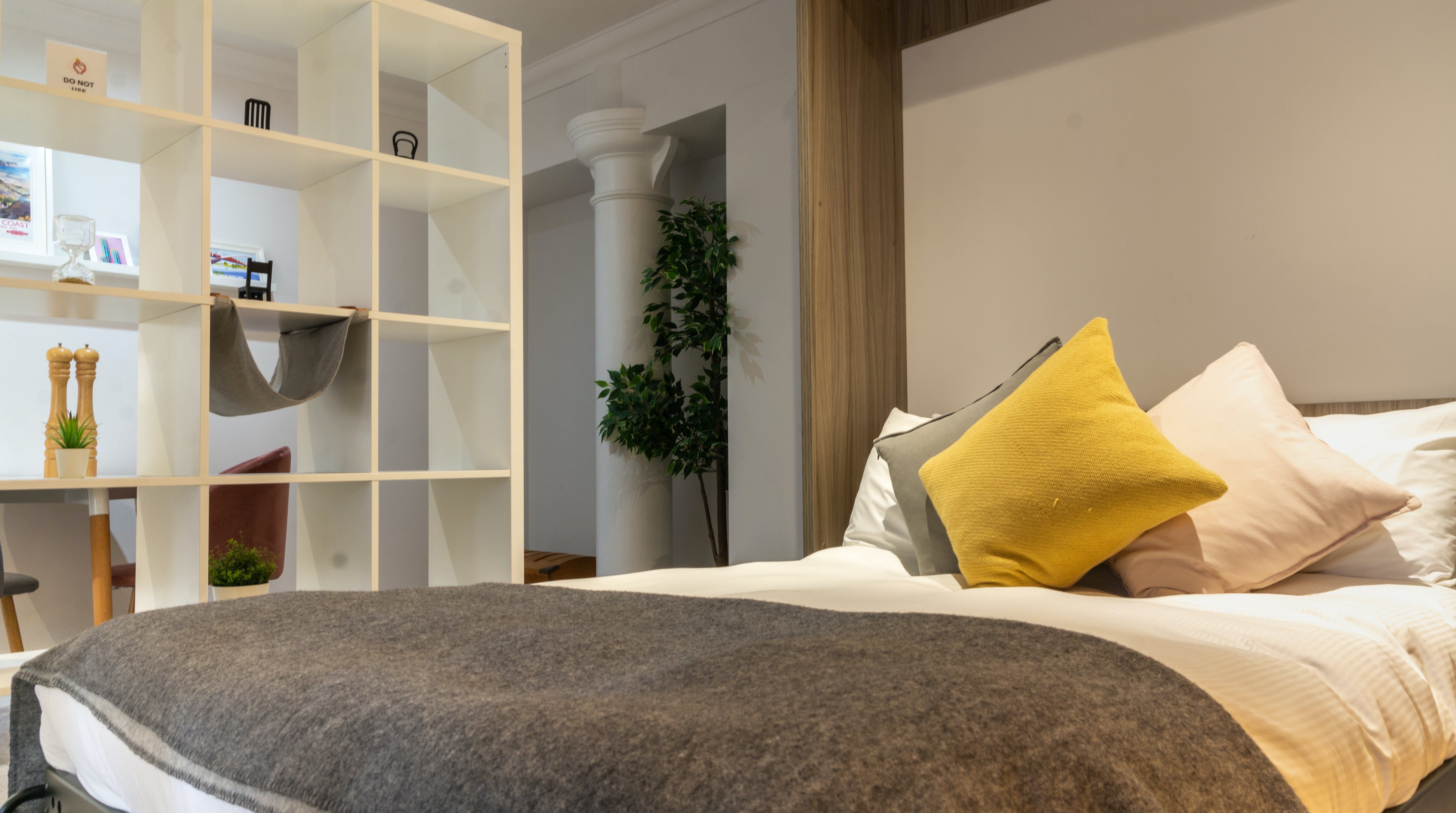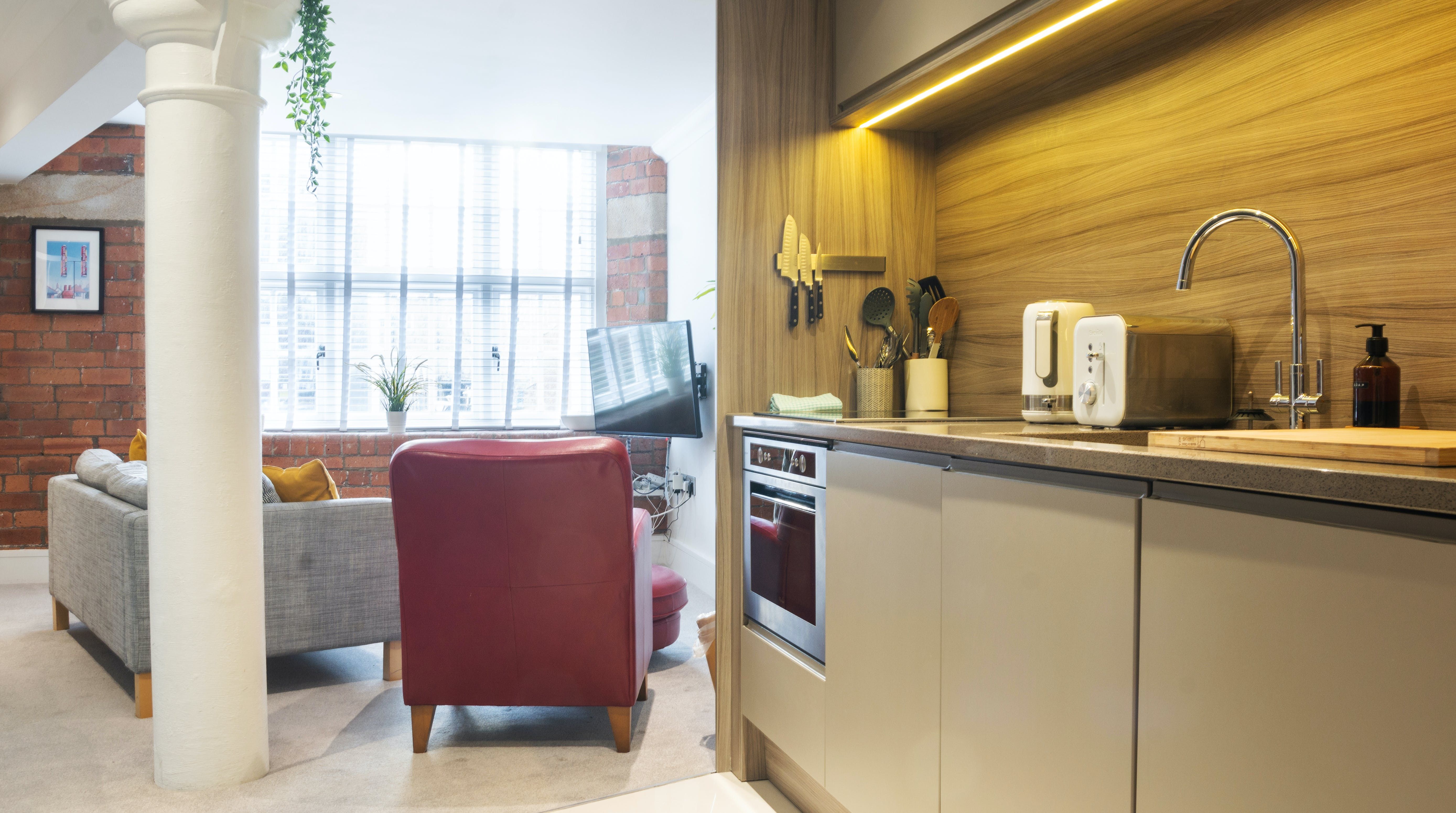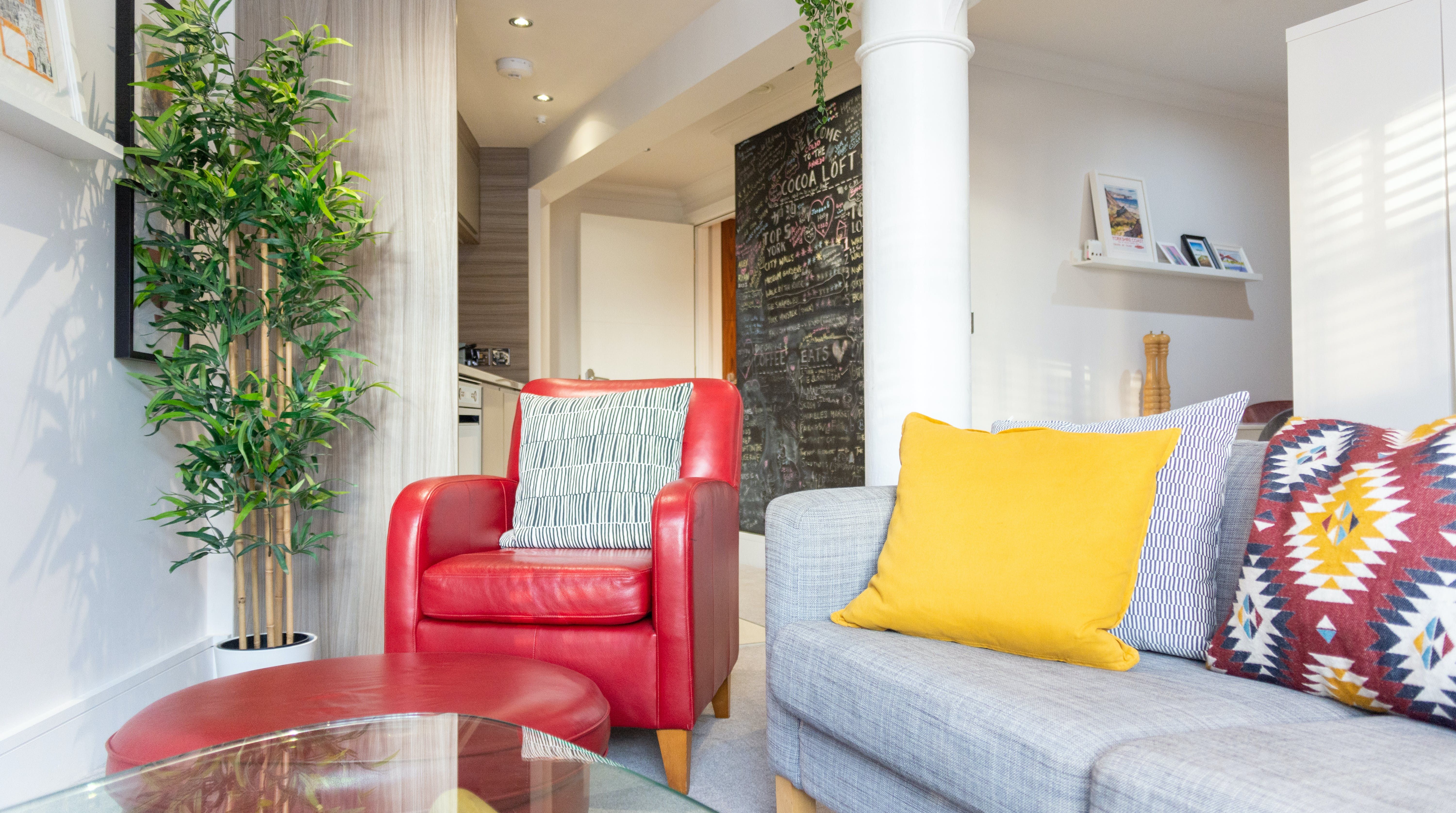 You’ll find this studio apartment in a former confectionery factory on the banks of the River Foss. Inside, expect contemporary design with refreshing pops of colour, exposed brick walls and artwork depicting the building’s heritage. In the comfy living area, the cherry red armchair is the perfect spot for relaxing with a glass of wine at the end of a busy day, while the dining nook calls for sitting down with a generous slice of locally produced curd tart and a strong cup of tea. When you’re ready to stretch your legs, take the ten-minute amble to the JORVIK Viking Centre, higgledy-piggledy Shambles and Betty’s Tea Room – somewhat of an institution in Yorkshire. Plus, the world-famous Minster is only a fifteen-minute stroll away – Ye Olde Starre Inne, York’s oldest pub, makes for an excellent pit-stop en route.