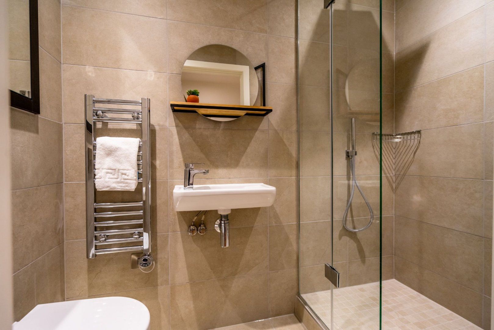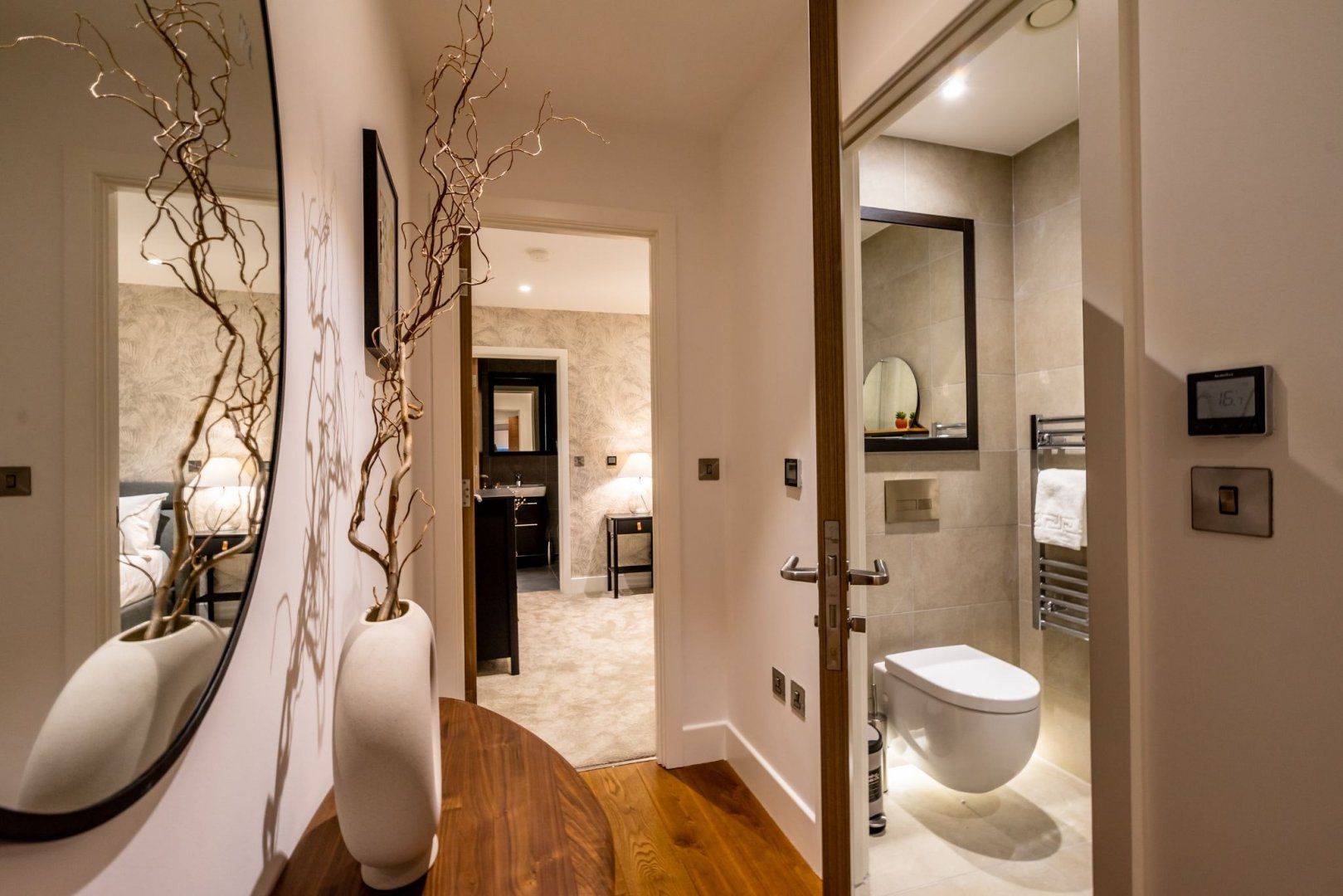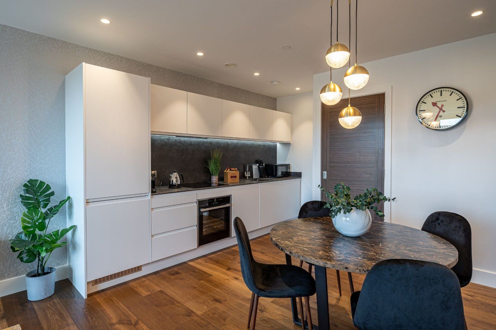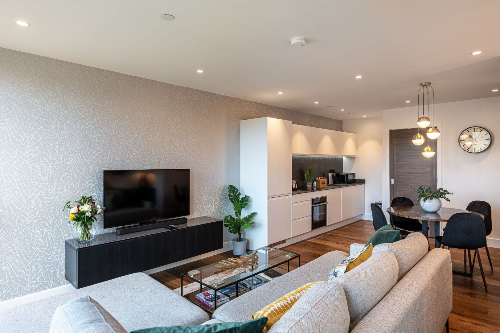 From the apartment’s balcony, you’ve got uninterrupted views over the Foss River to Clifford’s Tower – a 13th-century fortification sitting atop a hill. This is the perfect spot for a drink or two at the end of the day. River views continue inside, where floor-to-ceiling windows in the living room flood the place with natural light. Hardwood floors add a classy touch, and the underfloor heating is a delight in the winter months. The open-plan living area feels spacious and sleek, and the master bedroom is particularly plush with its chaise longue and desk should you need to work remotely.