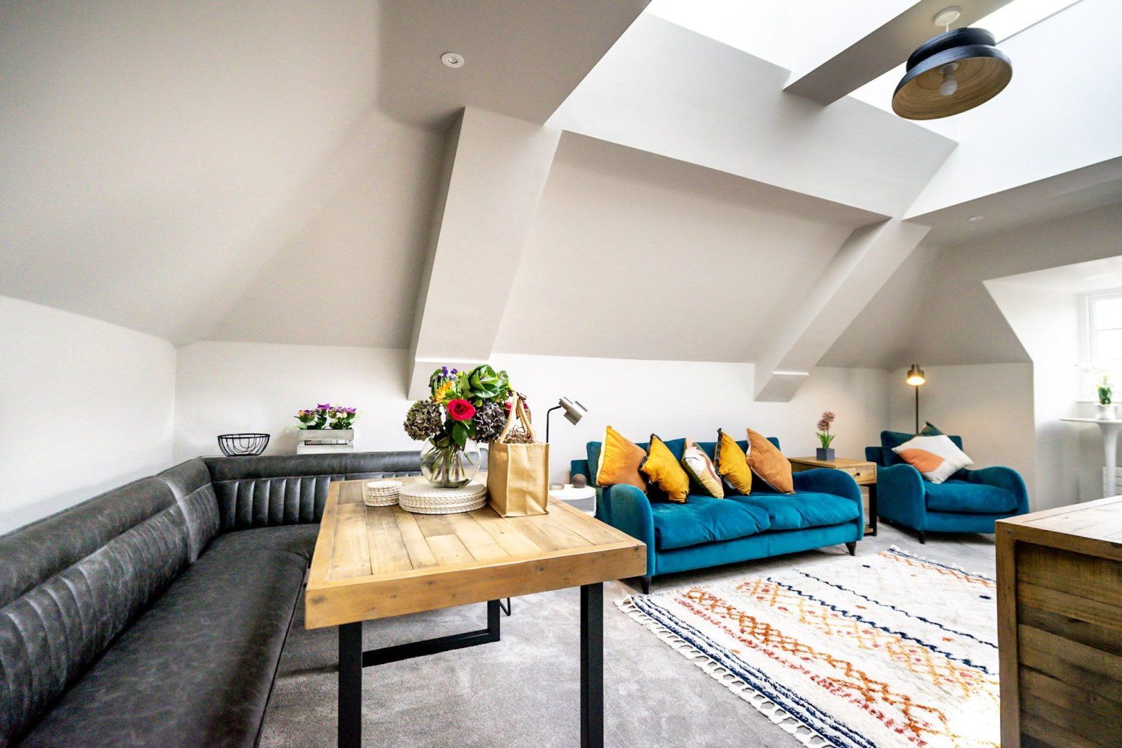This luxurious apartment, close to the city's historic centre, has everything you could need for a romantic weekend getaway. It's beautifully furnished, with warm grey tones throughout and bright pops of colour, courtesy of the blue velvet sofa and chair. The vast leather-covered corner seat by the dining table is a standout feature, as are the skylights, which ensure plenty of natural light illuminates this loft-style living space. A high table and stool have been thoughtfully placed by the window so that you can enjoy wonderful views across the Minster Gardens with an afternoon cup of tea. The cosy bedroom has plenty of storage for unpacking your belongings, plus a dreamy king-size bed and a lovely dressing area – perfect for getting ready for a night on the tiles. And when you're not experiencing the best of York's eclectic nightlife, you're less than a five-minute stroll from the iconic York Minster and half a mile from the city walls.