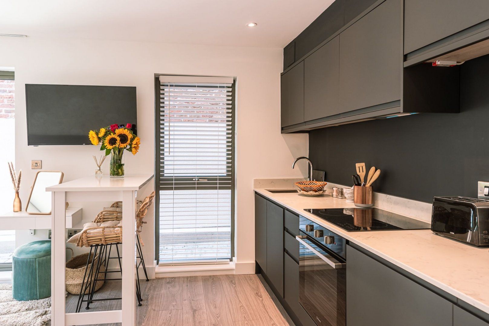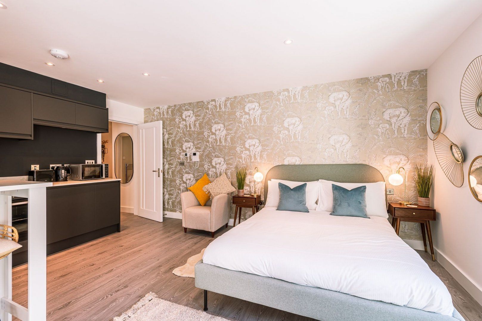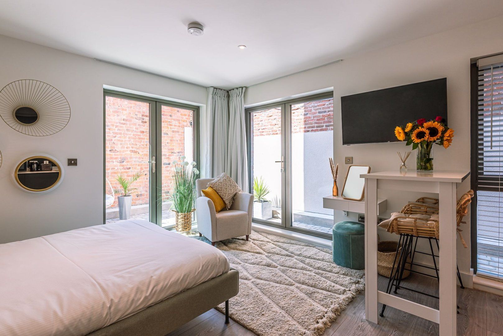 This stylish studio is just a stone's throw from the centre of the picturesque city of York. Your hosts employed the services of interior designers to maximise the available space, creating a contemporary and clutter-free home where everything has its place. The open-plan space is topped off with a wall-mounted TV that's best enjoyed from bed – we challenge you to stay awake through even the most gripping thriller. The apartment also benefits from access to a lovely L-shaped outdoor courtyard with a hanging chair that's perfect for lazy afternoons reading outdoors in the sunshine. From your central location, even the furthest reaches of York city centre are no more than a fifteen-minute walk away, while the majority is just a five-minute stroll. Be sure to marvel at the magnificent York Minster, stride along The Shambles, and while away an afternoon or two in its many art galleries and museums.