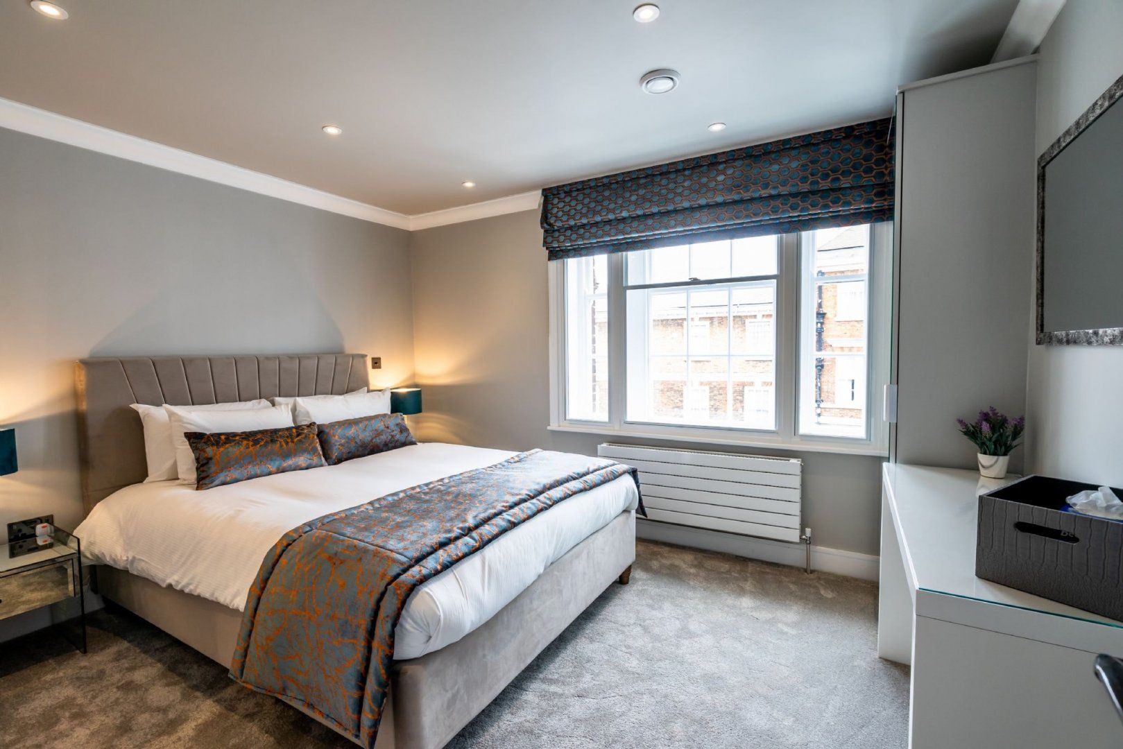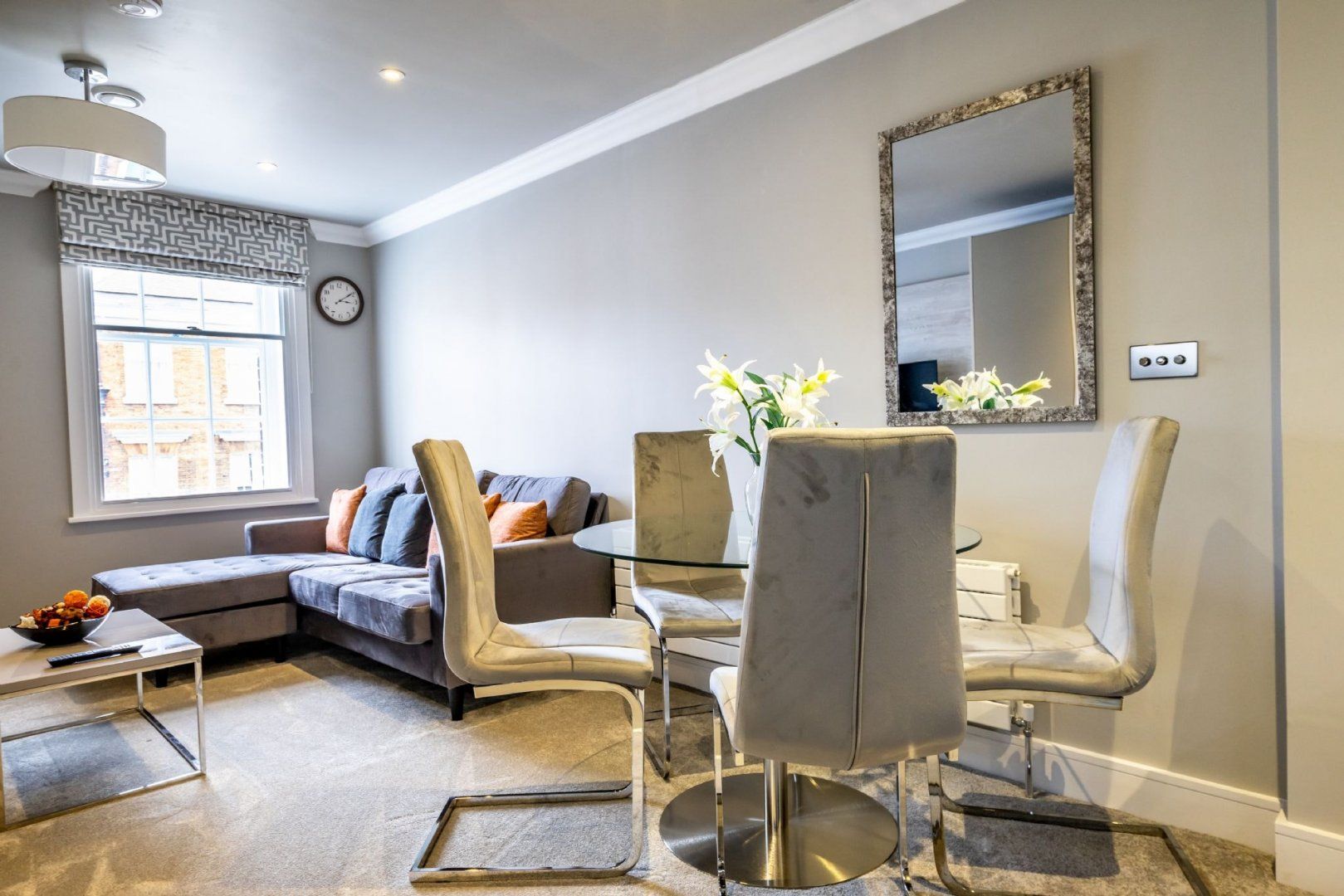 A recently converted landmark building within two minutes' walk of York Minster, the period exterior of this place doesn't give away the sleek, modern apartment inside. Offering all the comforts of home, you'll feel like a local in no time. With everything so new it's practically sparkling, you'll have a sociable, open-plan living space with a comfy sofa and a smart dining table, along with a high-spec contemporary kitchen area with all the kit you'll need to cook at home. Both bedrooms are stylish and each has a dedicated bathroom so there won't be any need to queue for the shower in the morning. Little luxuries include welcome treats, underfloor heating in the bathrooms and a funky remote control backlight behind the TV – to set the mood for the evening. The location couldn't be better either, with a walk of fewer than ten minutes into the city centre.