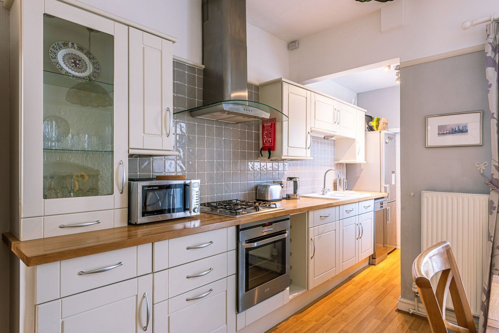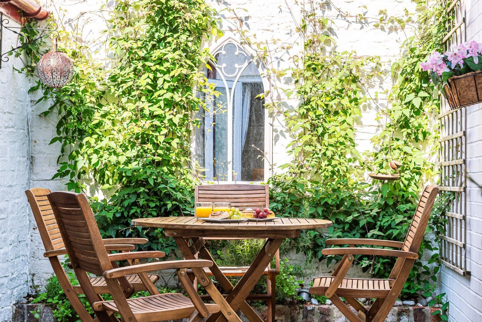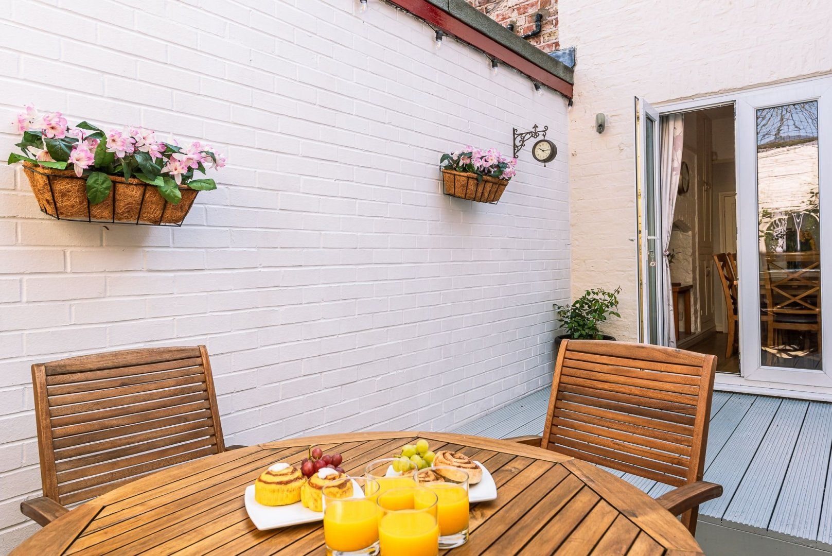 You'll find this cosy home only a fifteen-minute walk from the majestic York Minster. It's tucked away on a quiet street lined with pretty cottages, with the restaurants, pubs and shops in the city centre just a short stroll away. Open the front door and step into the charming living room. We love the repurposed fireplace – now a decorative statement piece – and the sheer amount of light spilling through the windows. Kick-off your shoes and snuggle up on the squishy sofa, watching your favourite films – the host provides complimentary Netflix and Amazon Prime accounts, so you'll have plenty of options. Come dinnertime, pad into the country-style kitchen and rustle up a meal – it's stocked with cookware and cutlery to make cooking a breeze. On sunny days, take your fare into the lovely courtyard and dine alfresco. Although it's small, we think the wisteria-covered walls and pretty flowerboxes turn it into a tranquil, whimsical space to unwind with a glass of wine as the day slowly draws to a close.