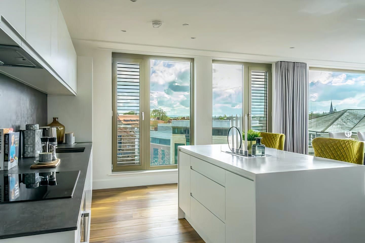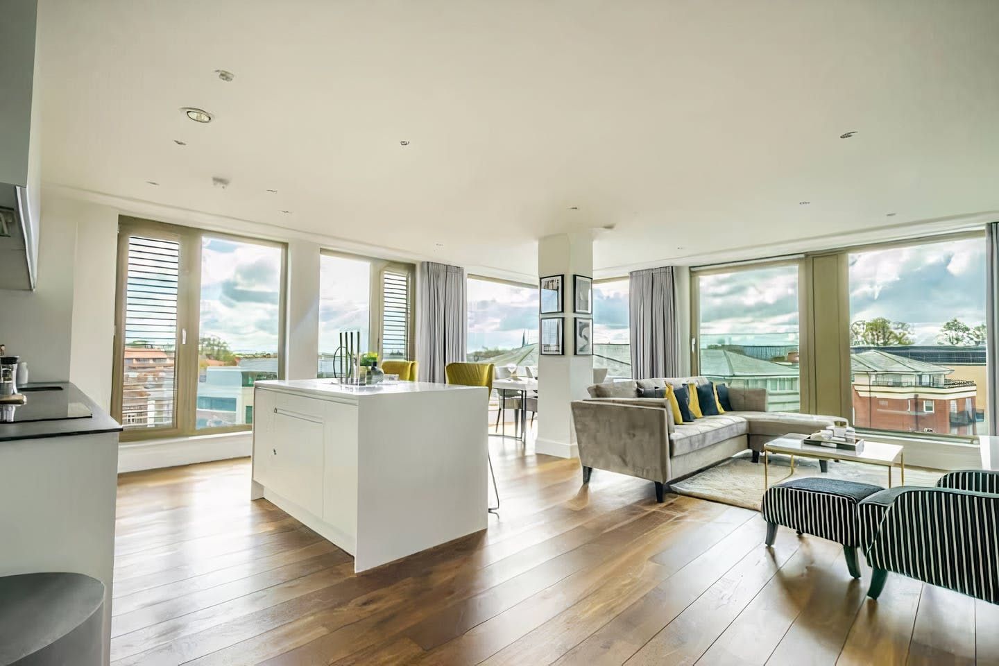 Just when you think you've seen the best views a York city bolthole could deliver, this palatial pad comes along and blows us all away. Perched high on the fifth floor of a contemporary apartment building, the city vistas across the waterways of the River Foss and to the Howardian Hills beyond are second to none.