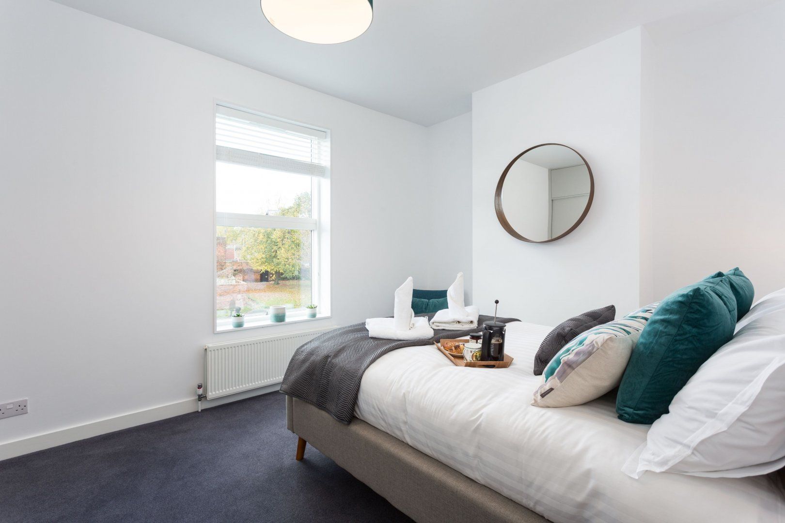 The first floor doesn't disappoint, either. The bedrooms are minimalist in their design, particularly in the master which has some chic hand-crafted sliding wardrobes. This room also benefits from a view of York's City Walls out through the window.