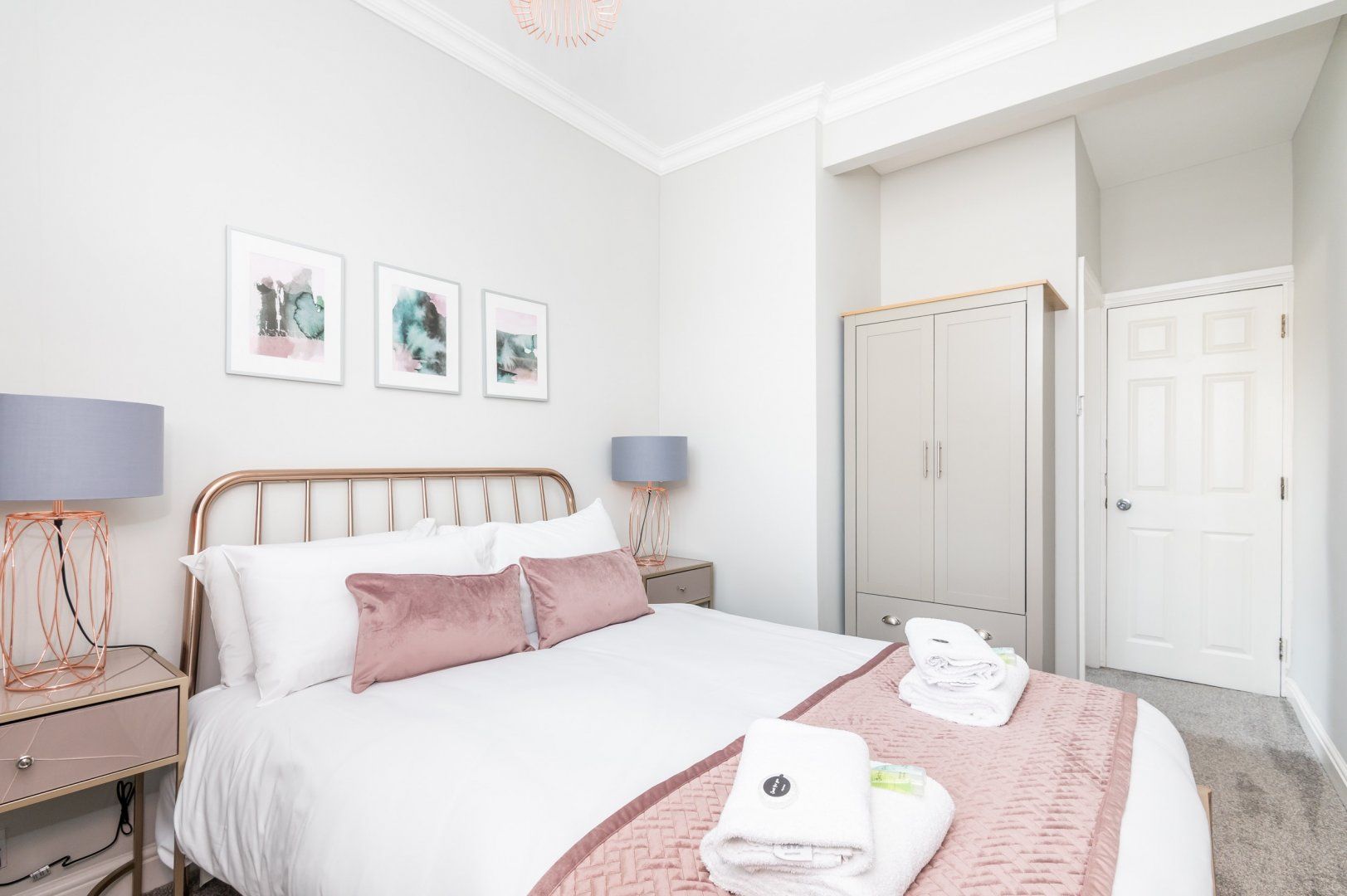 Bright and welcoming, this house is a great base for exploring historic York. The decked garden is a bonus for a city break, and the modern, clean interiors make for an attractive home-from-home. There’s plenty of room for everyone to dine together or unwind in the lounge, so you won’t feel crowded. Each room has an en-suite bathroom, so this is an ideal choice for a large group – you don’t want to be queuing for the shower when you could be meandering along the Shambles, just fifteen minutes away.