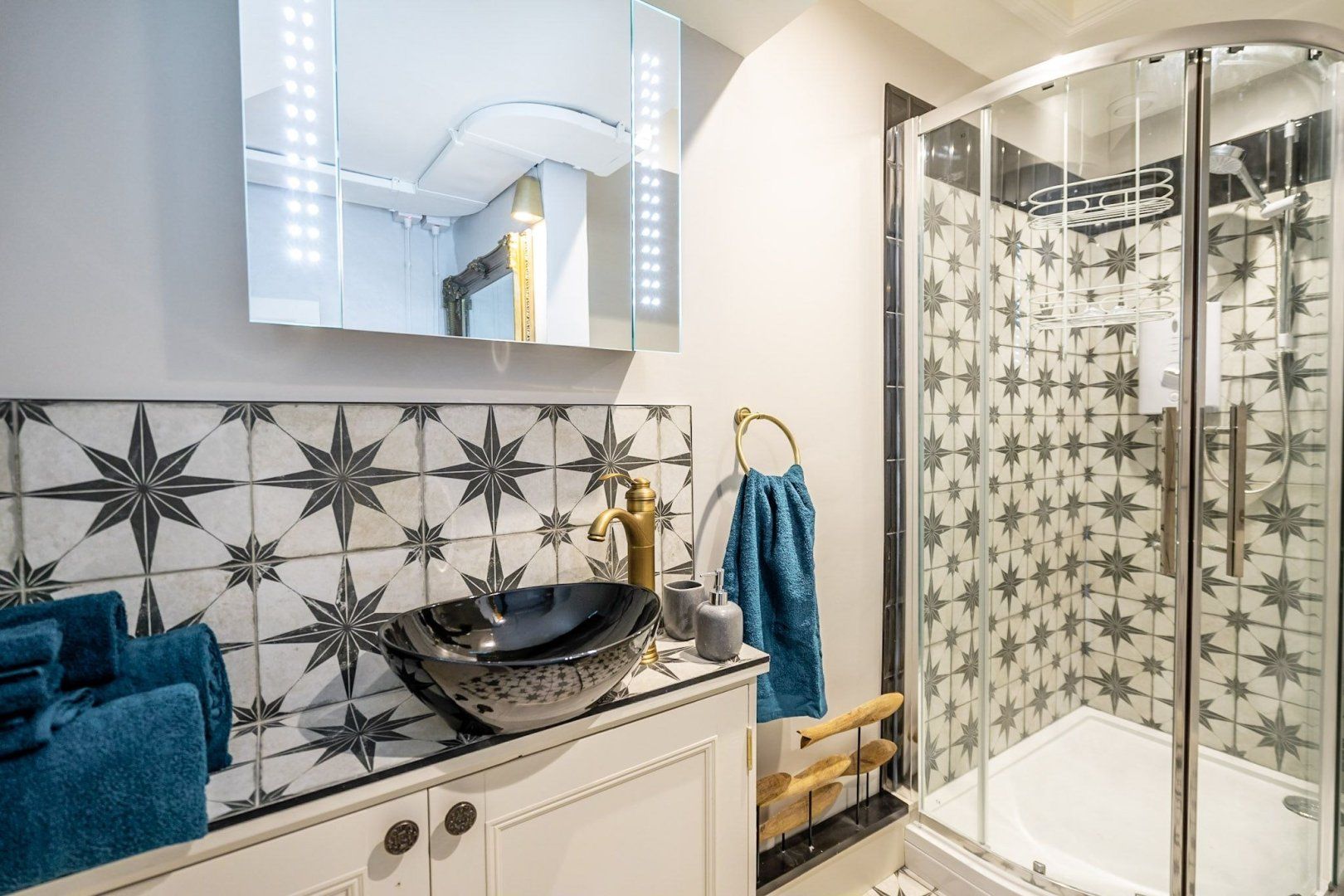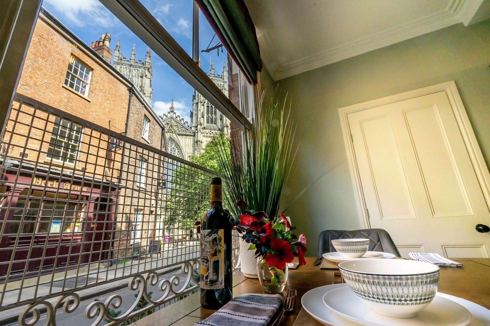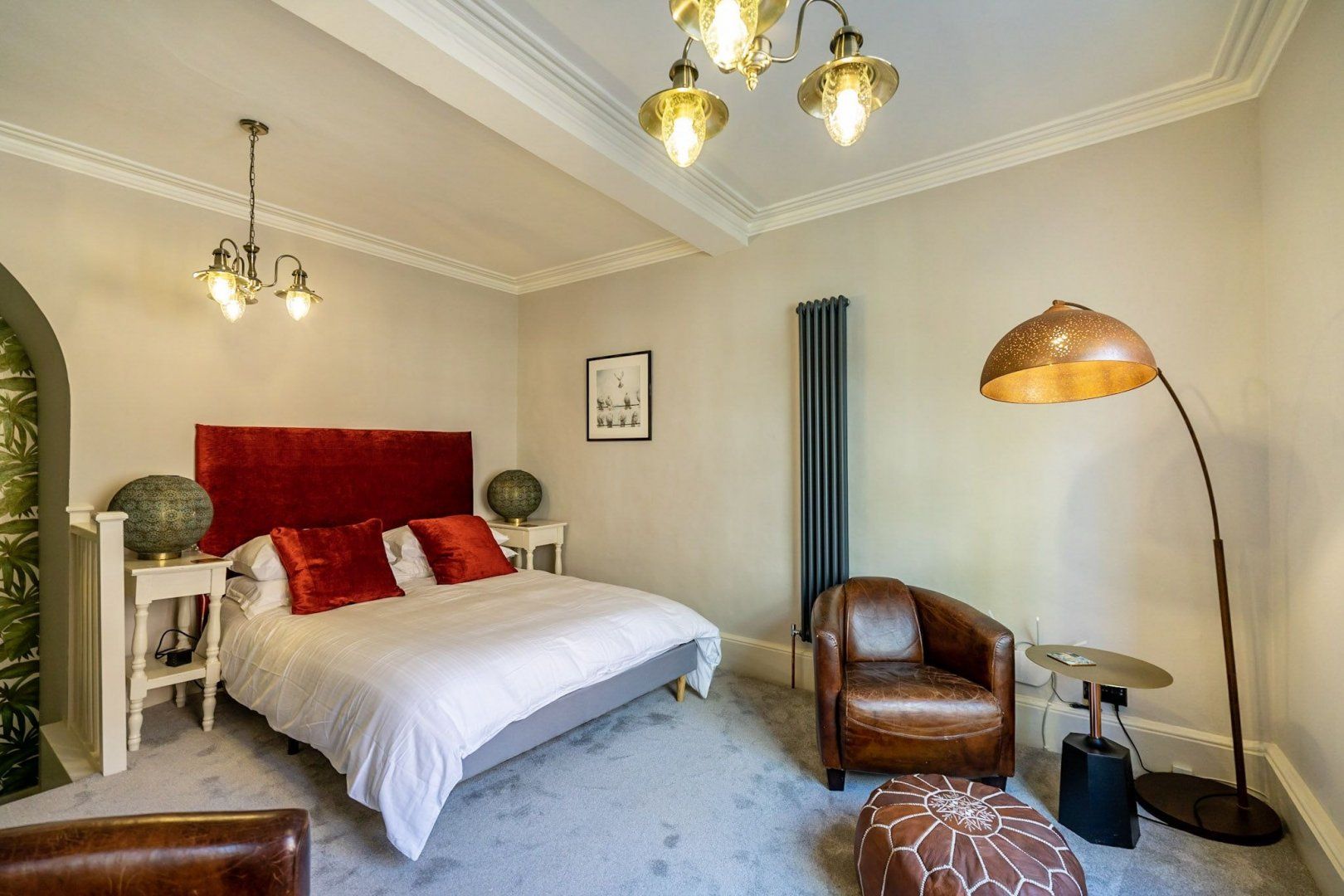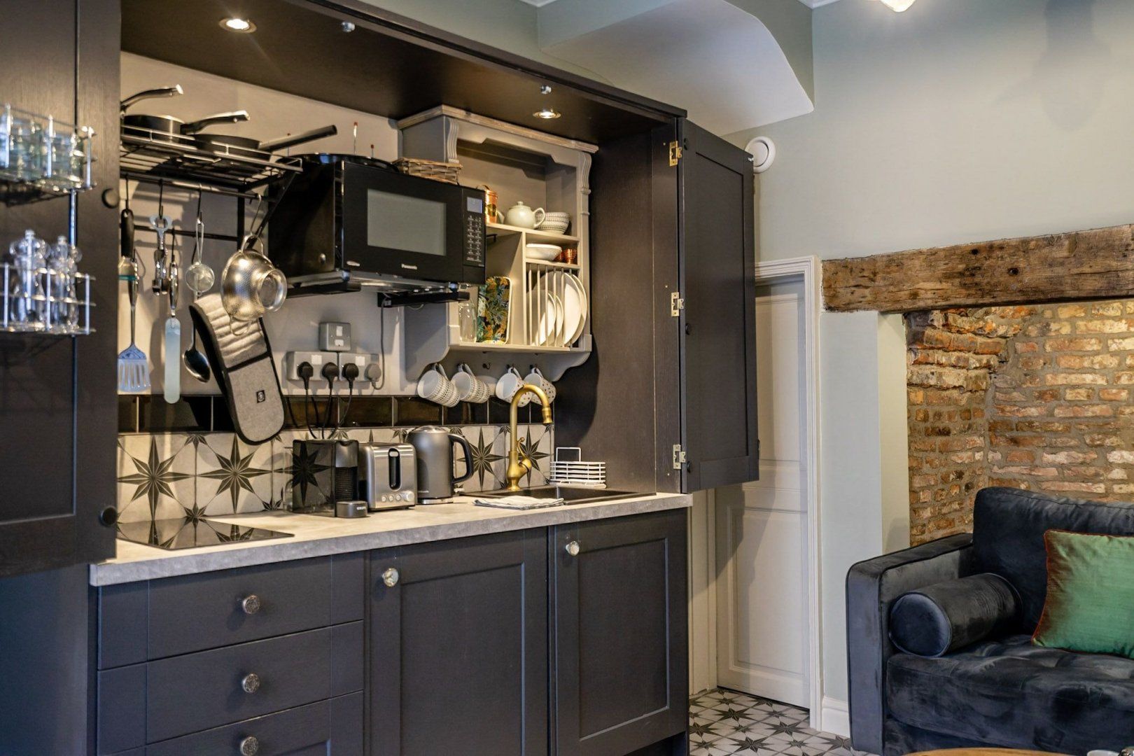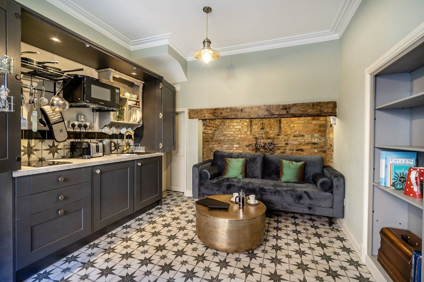 If you’re in York for culture, history, and plenty of pub trips, then this home couldn’t be any more perfectly placed. You’ll be living a two-minute walk from York Minster, and just three from the Theatre Royal, York Art Gallery, and the watering holes of Stonegate. This ancient street, where the house is located, was once the medieval route into the city from the north. But today, it’s your route to luxe living in the city centre. A former jewellery shop, the quaint brick building still has quirky features and a creative soul. As soon as you step inside, the striking decor is sure to capture your imagination. Floor tiles with a star pattern give the space a Moorish vibe, an exposed brick alcove shows how the home has retained traditional architecture, but then modern elements such as the charcoal-grey kitchen cabinets bring you back to the 21st-century. Up in the bedroom, a funky, plant-patterned feature wall sits in another stairway alcove, and a bright-red velvet headboard brings a regal edge to proceedings. Pour a glass of champagne, open the sash window and peer out at the awe-inspiring views of the spires of York Minster.