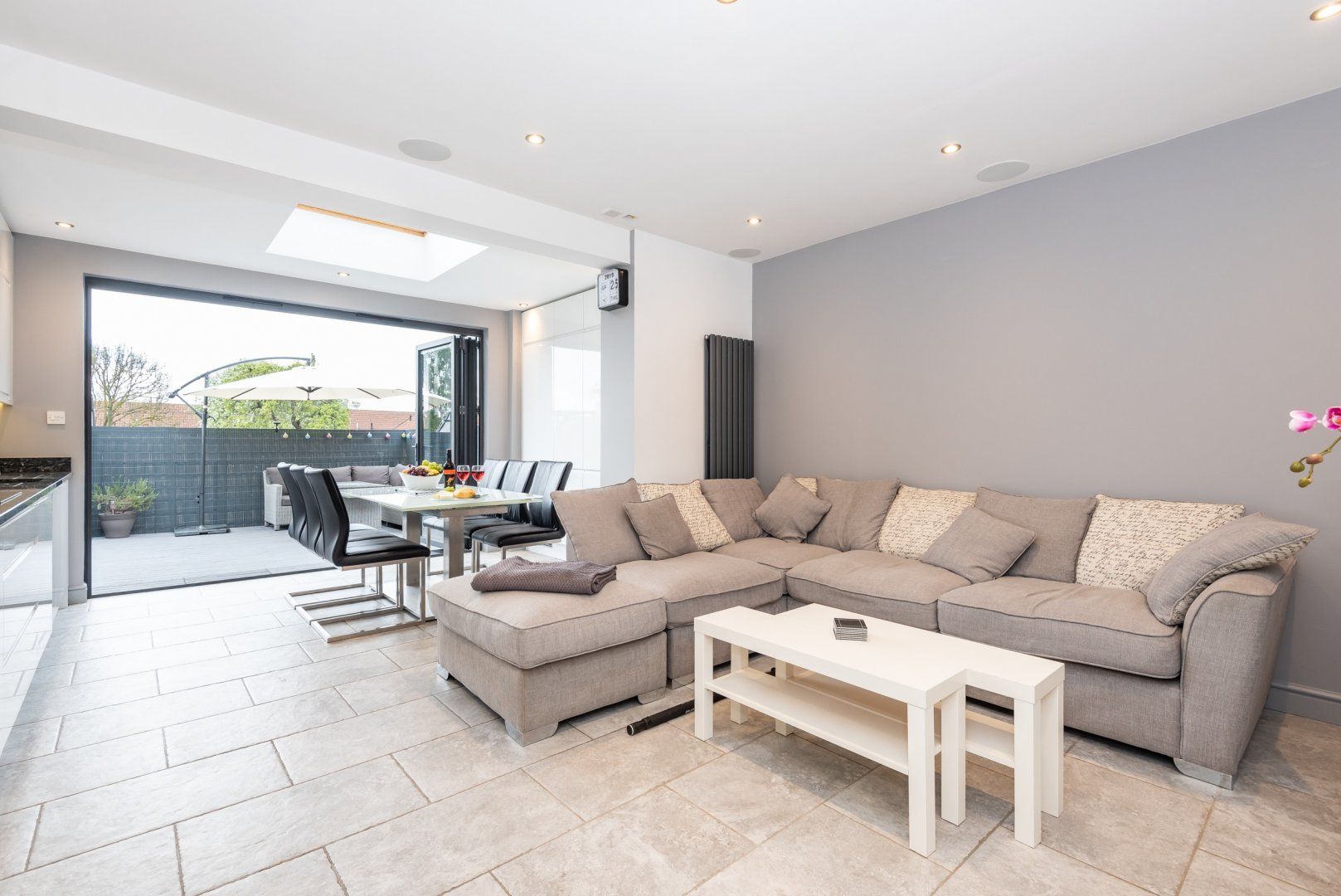 While the city of York might be known for its historic architecture, this modern apartment with its chic design and cosy furnishings will make you feel perfectly at home in the present. It is located just a fifteen-minute walk from the city centre, providing easy access to famous sites like York Minster and York Castle Museum, as well as a range of trendy restaurants, bars, and cafes. While the upstairs bedrooms each provide a sense of privacy and comfort, it is the main floor’s living room, kitchen, and diner that is the highlight. The open-plan living space elegantly combines with an ample rooftop terrace and lounge area, allowing guests to enjoy dinner and drinks alfresco.