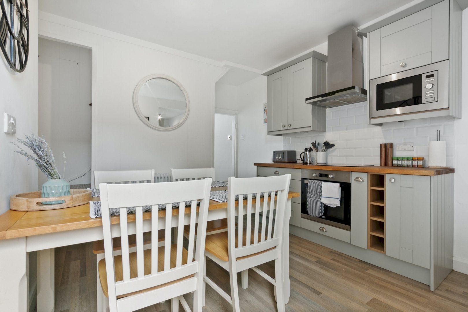 Upstairs guests will find two spacious and beautifully decorated double bedrooms, each with lots of space and storage.