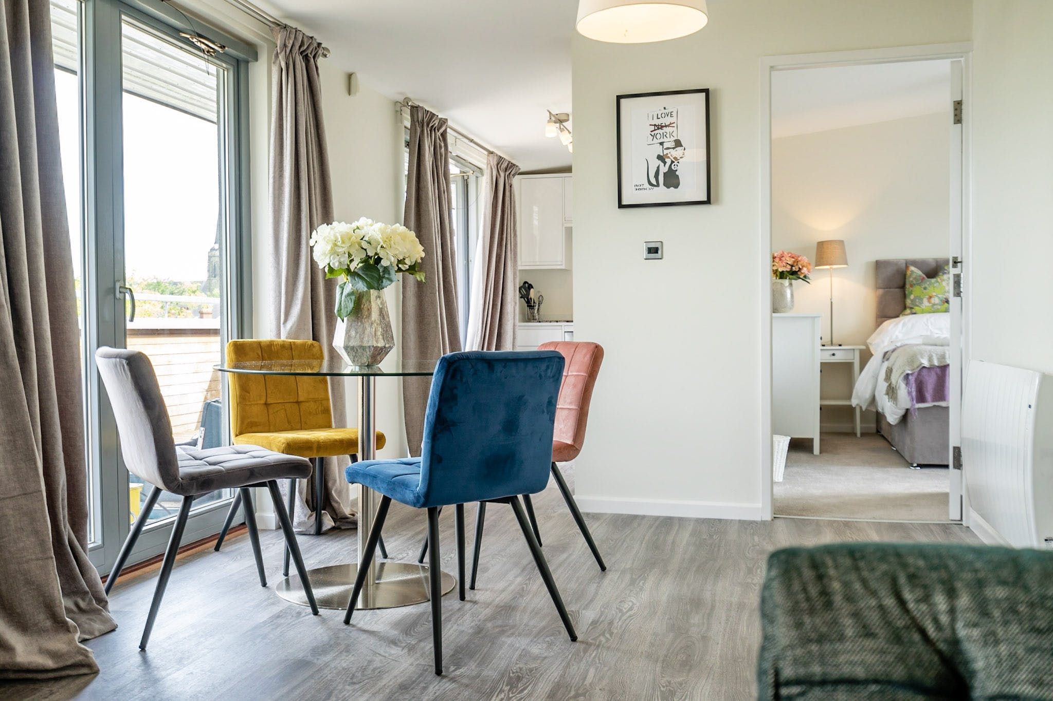 Watch life go by along York's medieval city walls from the private balcony that wraps the entire length of this bright, modern apartment. Dining alfresco on sunny evenings, as dusk settles over the historic rooftops in the distance, is a rare treat for a home this centrally located. Inside, expect pristine interiors and all the home comforts you could need. We’re particularly impressed with the master bedroom with views over the city, complete with a king-size bed donned with crisp, snow-white linens. And thanks to its unique position away from traffic noise, you’ll be sure to bank a peaceful night’s sleep here. When it’s time to set off exploring, it’s hard to imagine a better location. You’re just a short walk from the city’s historical hotspots, including York Minister (sixteen minutes on foot) and the vibrant Shambles Market (ten minutes on foot). When thought’s turn to food, lose yourself in the labyrinth of streets wall-to-wall with bustling restaurants and traditional pubs. And no visit to York would be complete without a visit to the institution that is Betty’s Café Tea Rooms (just fourteen minutes on foot) for a fat rascal scone and a side portion of Yorkshire nostalgia.