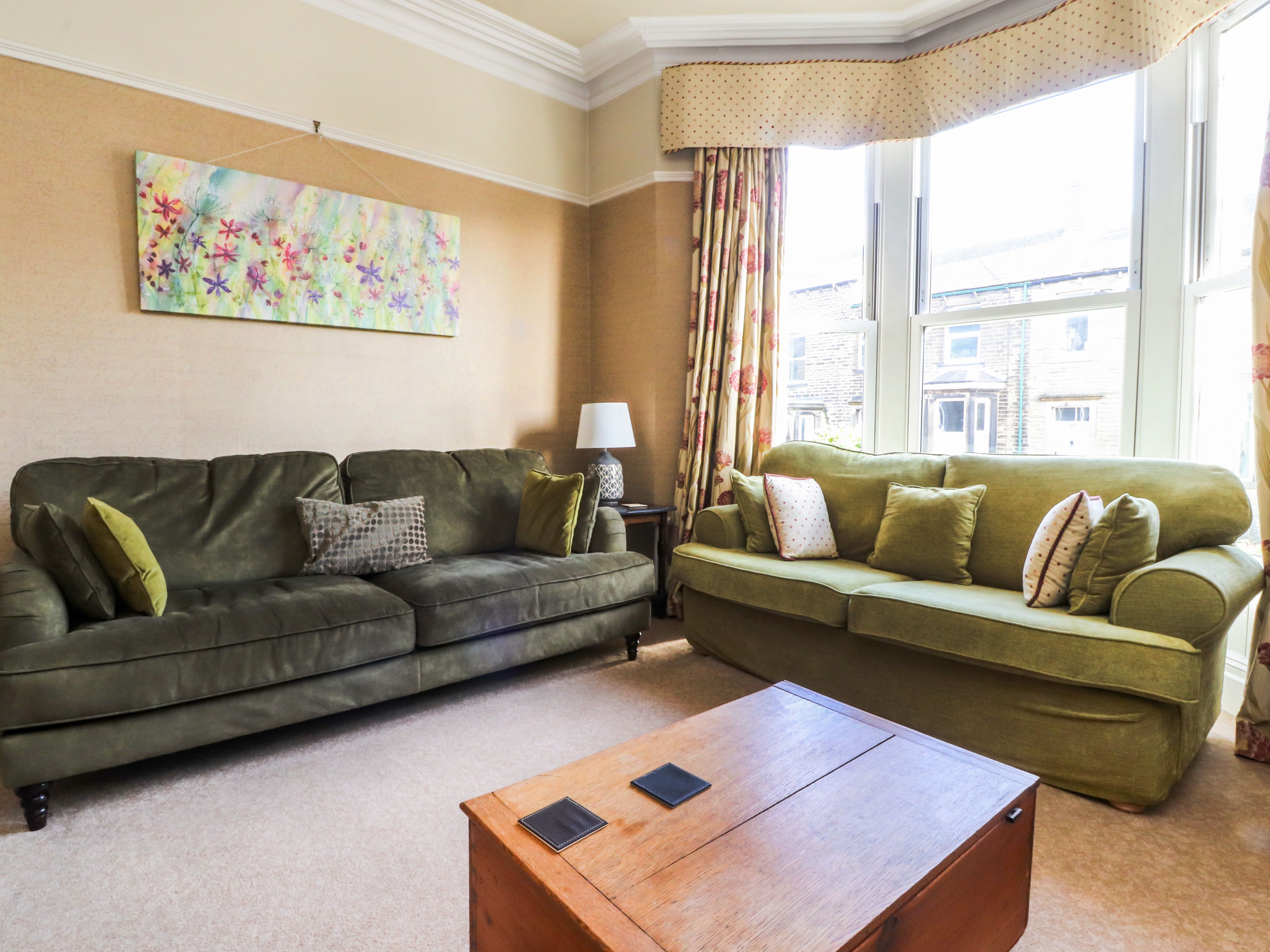 Amenities Gas central heating. Gas AGA, electric cooker, microwave, fridge, fridge/freezer, washing machine, tumble dryer, dishwasher, 2 x TVs & DVD players, Sky Q with Sports Package, Superfast Broadband, CD player, library of books/games. Fuel & power inc. in rent. Bed linen & towels inc. in rent. Cot & highchair on request. Unrestricted roadside parking. Lockable bike storage. Courtyard with additional front sitting area with garden furniture & BBQ. Two well-behaved dogs welcome. Sorry, no smoking. Shop & pub 3 mins walk. Note: Property is 10 yards from Keighley Road & subject to general road noise.