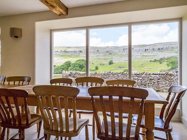 Holiday home Dale House Farm Cottage is a lovely semi-detached cottage, on a working livestock farm, situated close to the hamlet of Chapel-le-Dale, just six miles from Ingleton in the Yorkshire Dales. The cottage can sleep 12 people in one king-size double, one double, one king-size double with mezzanine floor with twin beds, family room with four single beds, all with en-suite shower rooms, together with ground floor family shower room. Also in the cottage is a kitchen with dining area and woodburner and a sitting room. Outside is ample off road parking and access to open fields with a river running through. Dale House Farm Cottage is a delightful cottage from which to explore this lovely part of the Dales.