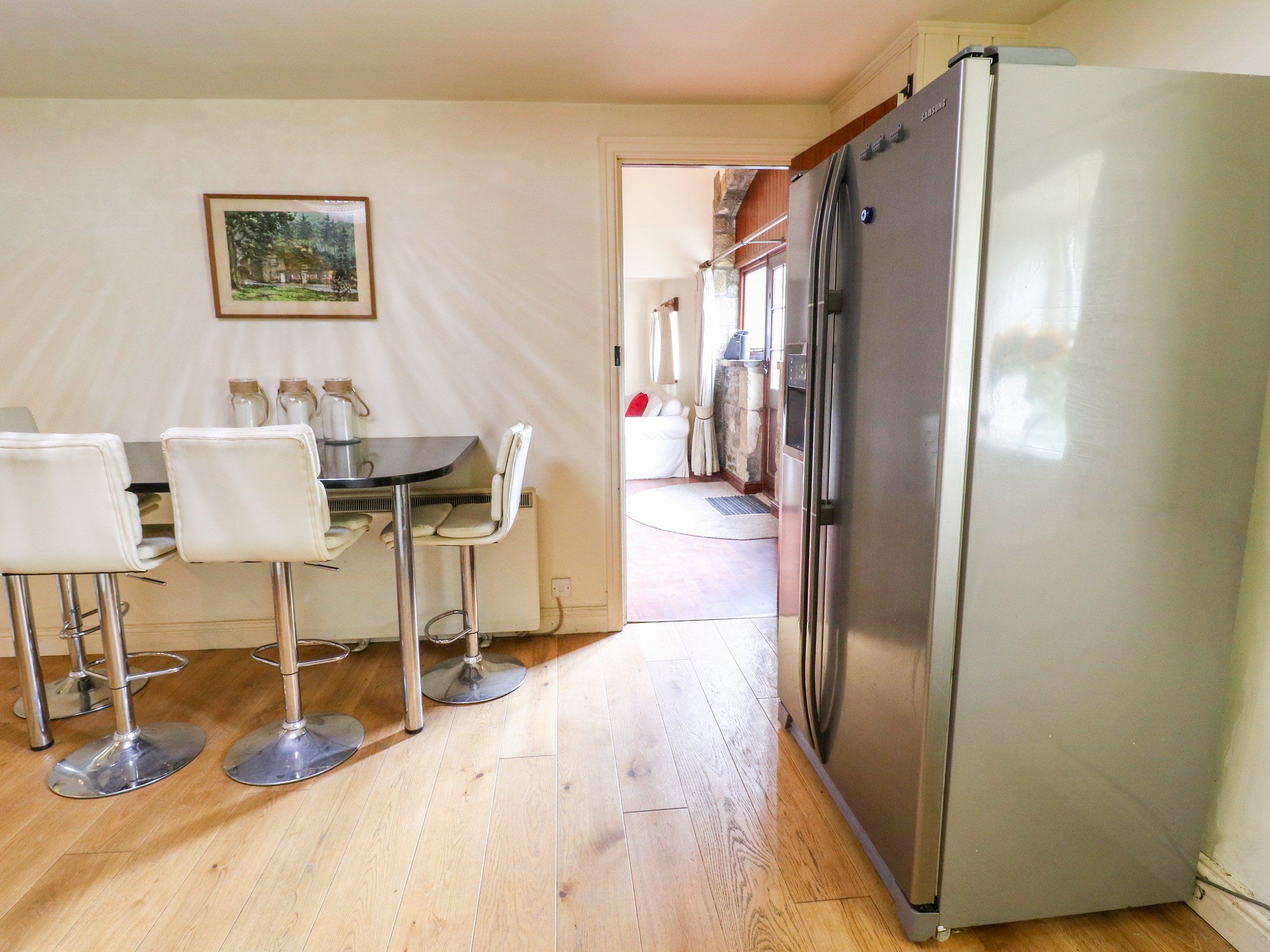 Amenities Electric central heating with open fire. Electric oven and hob, microwave, toaster, kettle, TV with Sky Glass and WiFi. Fuel, power and starter pack for fire inc. in rent. Bed linen and towels inc. in rent. One well-behaved pet welcome. Lawned garden to front. We would politely ask that guests do not park on the lawn, as there is off road parking for 2 cars. Sorry, no smoking. Shop 3.5 miles and pub 0.1 miles. Note: Check in 5pm. Note: Short breaks must have a minimum duration of 3 nights. Note: The double room is accessed via the day bed room, please bear this in mind when booking. Note: This property only accepts bookings which are Friday - Friday or Friday - Monday in May - August.The property doesn't accept Sunday check in's all year round. Note: Property accepts a minimum of a 3 night stay