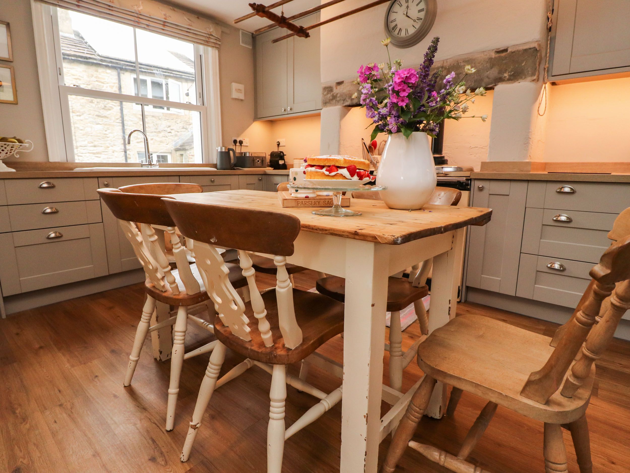Holiday home Dales Cottage is an end-terrace cottage is set over three floors on the outskirts of Threshfield, a stone's throw from Linton Falls in the Yorkshire Dales. The cottage has a first floor king-size double with en-suite, a first floor twin and a second floor attic twin with pull-out stacker bed, together with a first floor bathroom. On the ground floor is a kitchen with a dining table and AGA, a sitting room with a woodburner, as well as a downstairs WC and utility. There are permits for off road parking provided and a pub serving food within walking distance, great for walkers! Dales Cottage is an excellent base. Please note: Friday check-ins are preferred, thank you