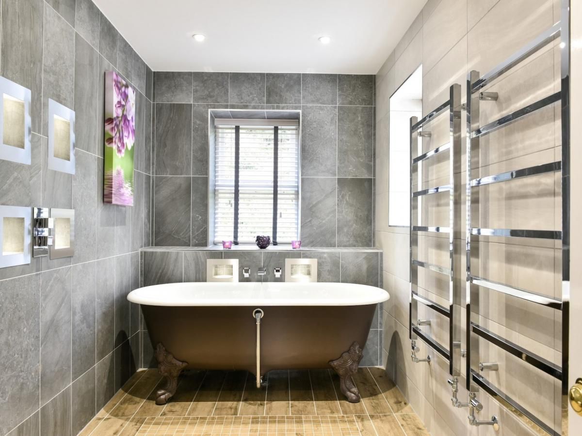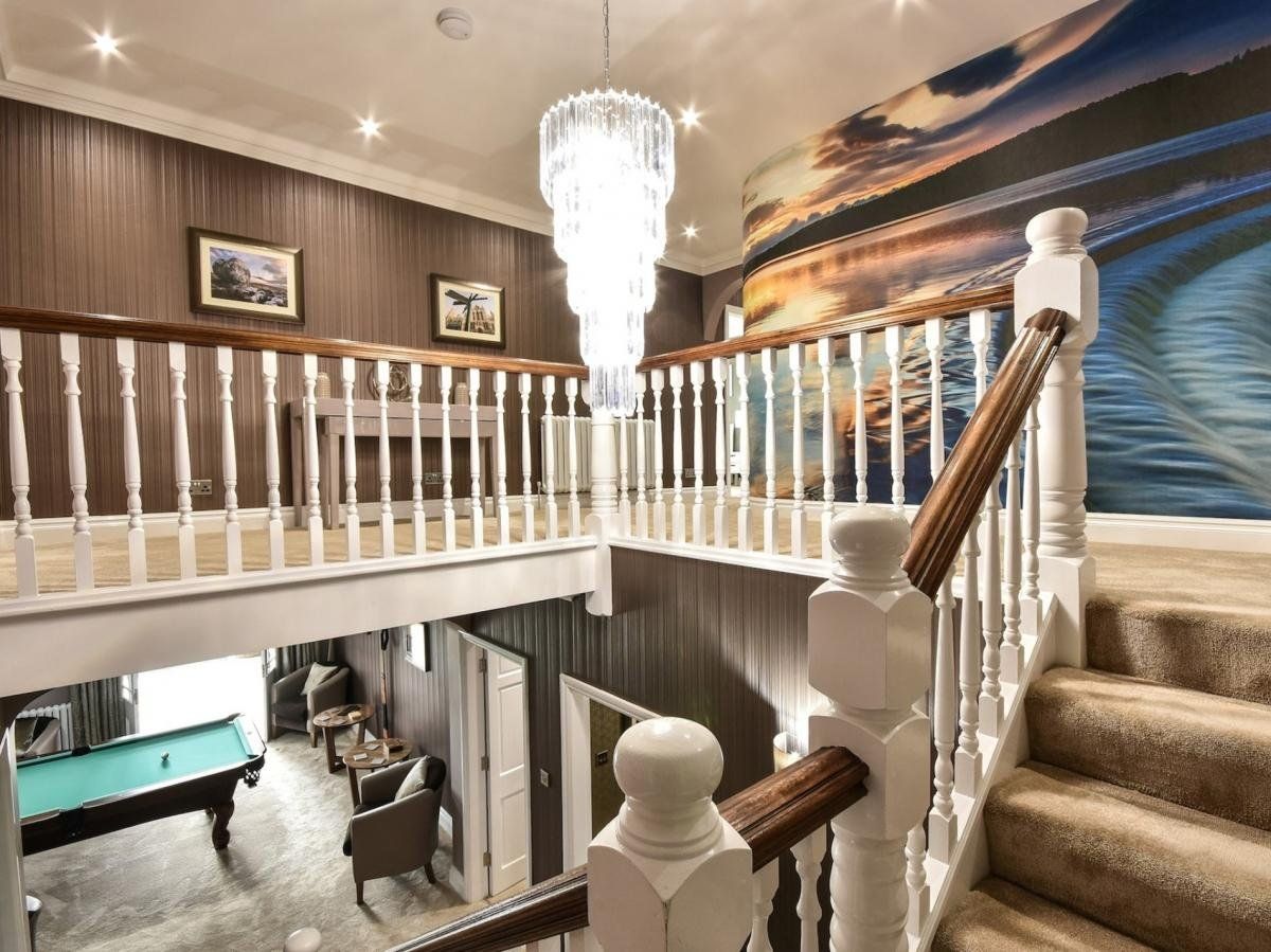 This spacious six-bed holiday home is finished to a high standard with several sitting rooms, open fire, roll-top baths, and a games room with a bar.