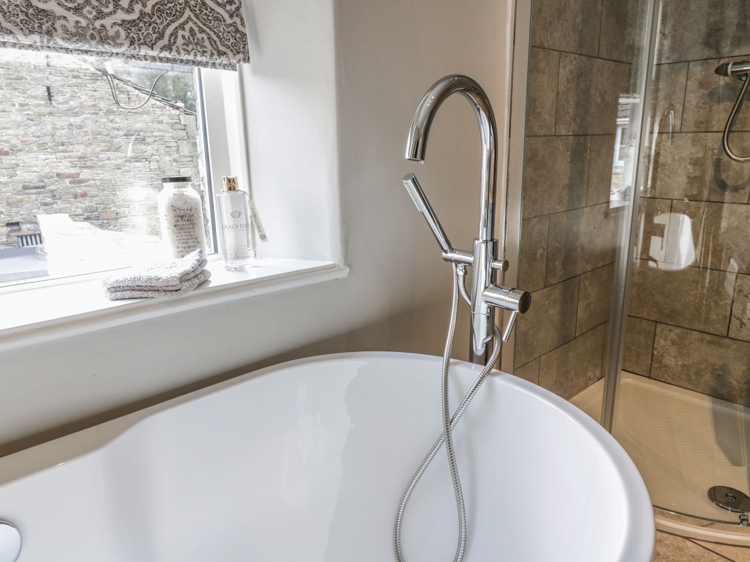 Accomodation Details This property was awarded a 2023 Sykes Star for scoring consistently perfect feedback from guests. One bedroom: 1 x king-size (zip/link twin on request). Bathroom with a freestanding bath, separate shower, his and hers basin and WC. Two person sauna. Kitchen with breakfast bar. Living/dining room with woodburning stove. Front room with dining area. The Snug retains a host of original features including exposed stonework, open fireplace with stove, wood panelling and Victorian narrow staircase, to ensure safe use, a sturdy handrail/banister is installed and the stairs are covered by a well fitted carpet. Please note: There is a pet charge at £25 per pet per week.Please note all bookings are Friday to Friday for this property