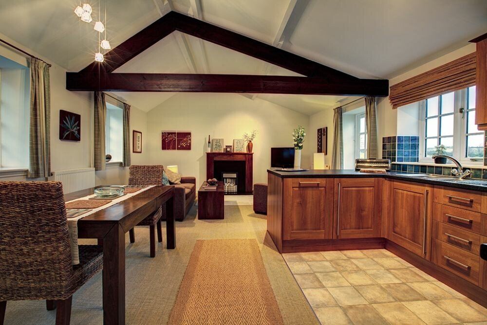 Accomodation Details Single-storey. One double bedroom. Bathroom with bath, walk-in shower, basin and WC. Kitchen. Open-plan living space with dining area and sitting area