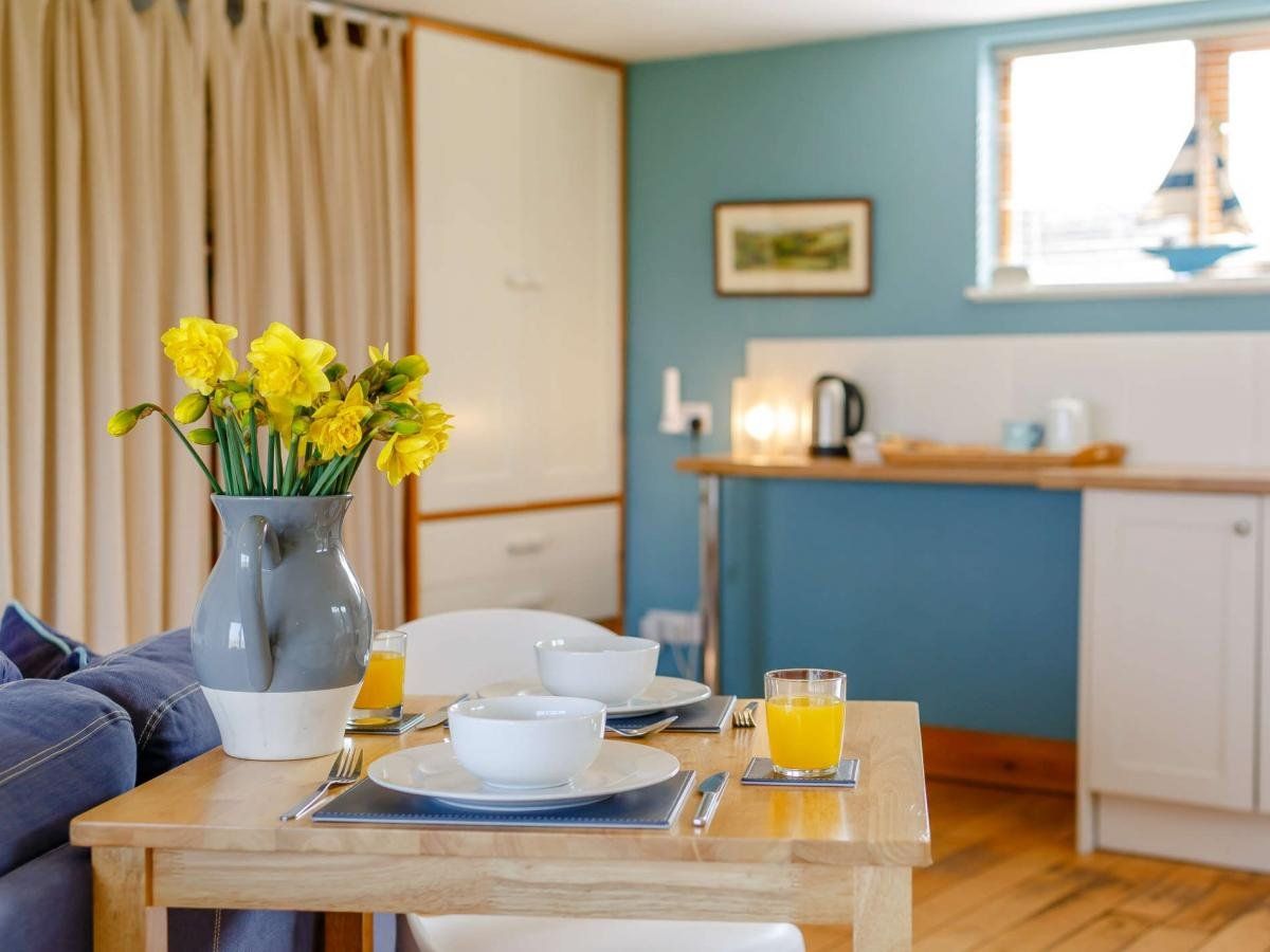 This open plan, single storey, studio style cottage is furnished with a seaside, nautical theme and is full of character. The cottage offers private parking, Wi-Fi, a smart TV, a multi fuel stove and a delightful, enclosed patio garden, ideal for a family dog.