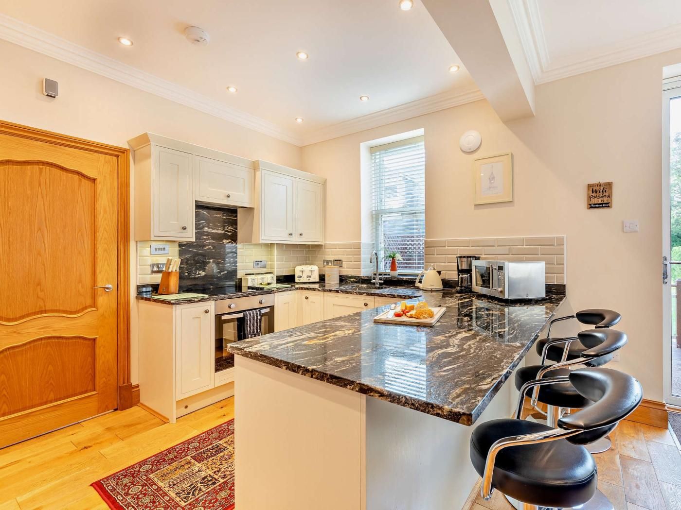 Just a few stone steps will lead you into the charming stone-built cottage where you will be greeted with contemporary, clean decor and a convenient cloakroom bathroom with WC.