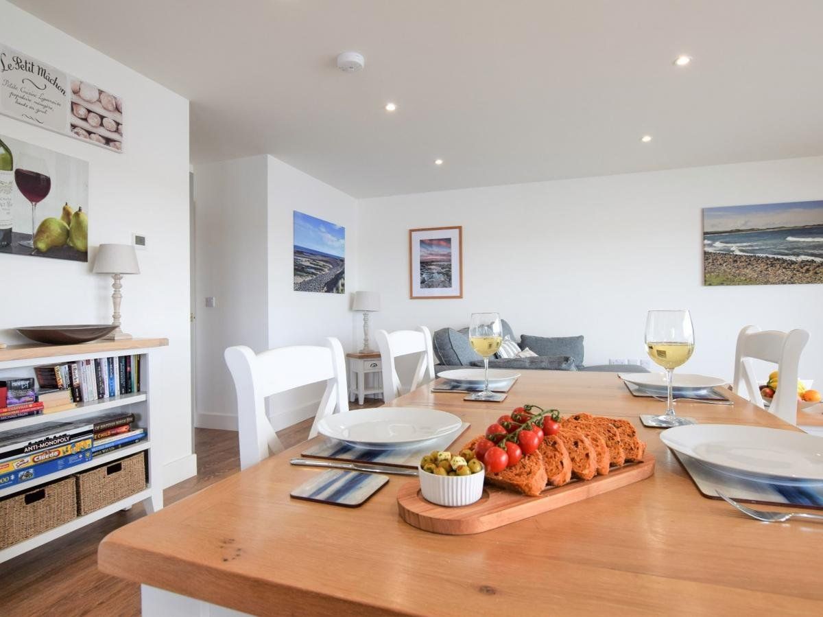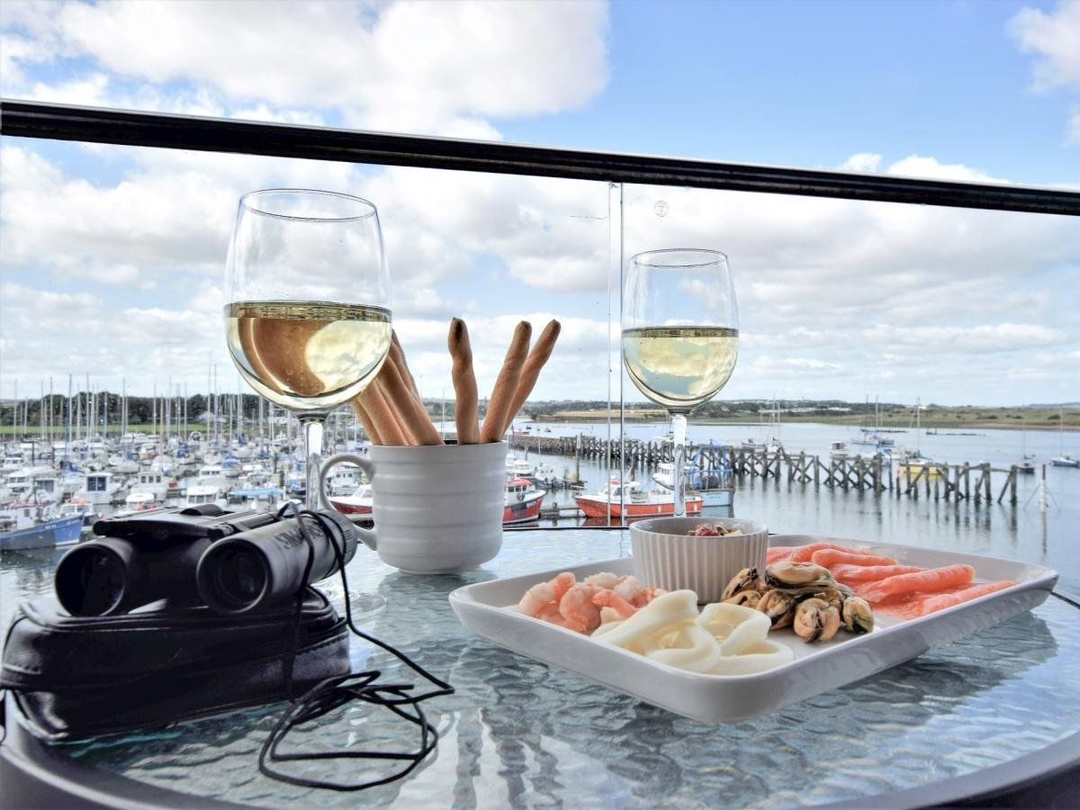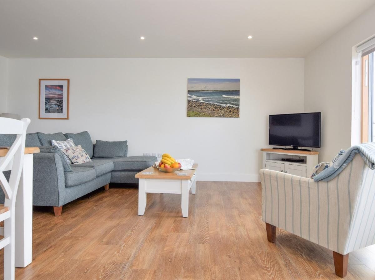 Relax in style and comfort in this beautiful holiday property with its dual-aspect, wrap-around balcony which affords you expansive views of the ever-changing light throughout the day from sunrise to sunset. Gaze across the yachts and boats moored in Amble’s popular marina towards medieval Warkworth Castle, on the Coquet Estuary.