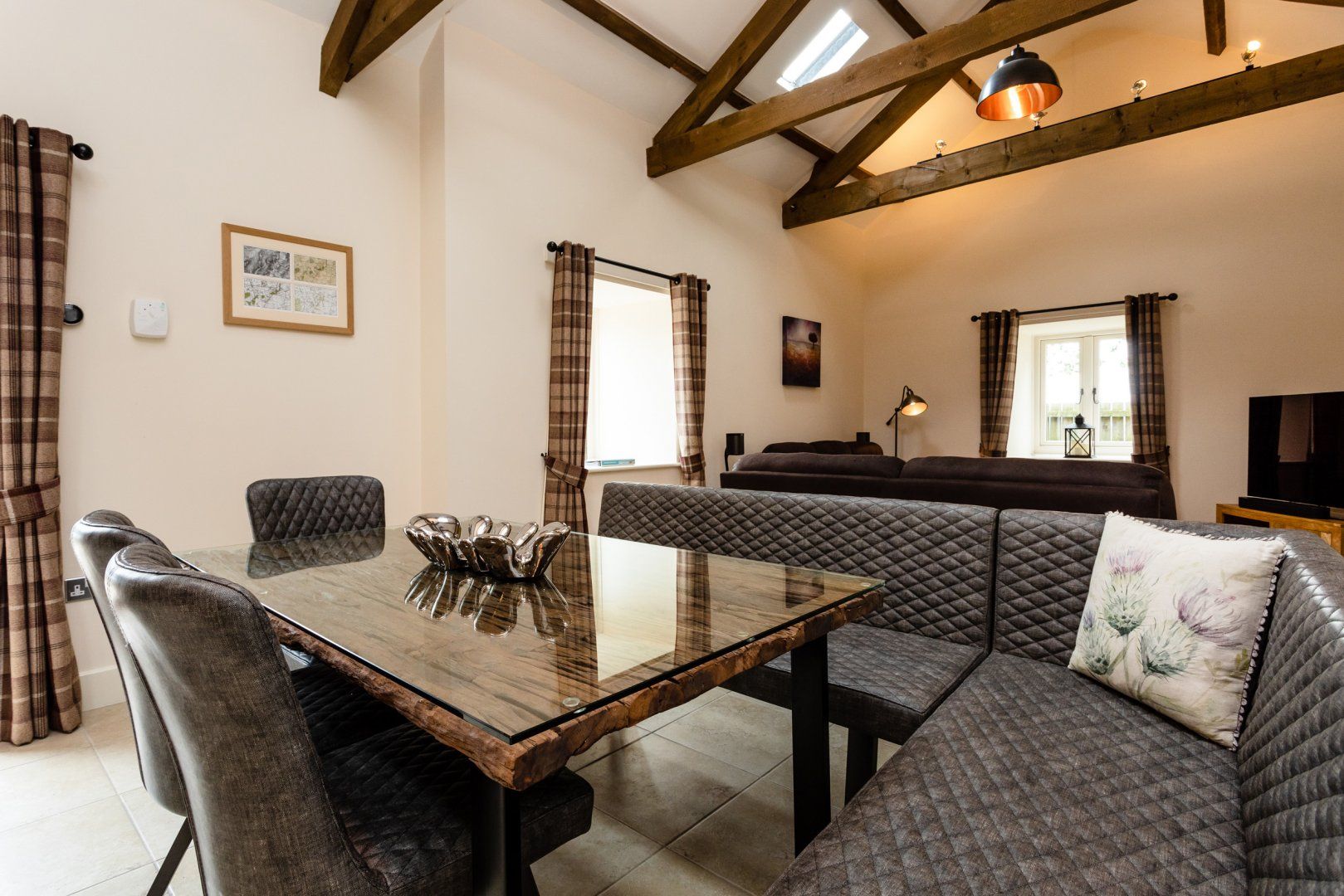 Accomodation Details Two bedrooms: Ground-floor super king-size zip-link (can be set up as a twin on request) with TV, 1 x king-size with TV and en-suite with walk-in shower, heated towel rail, basin and WC. Ground-floor bathroom with bath, shower over, basin, heated towel rail and WC. Open-plan living area with kitchen, dining area and sitting area with log burner.