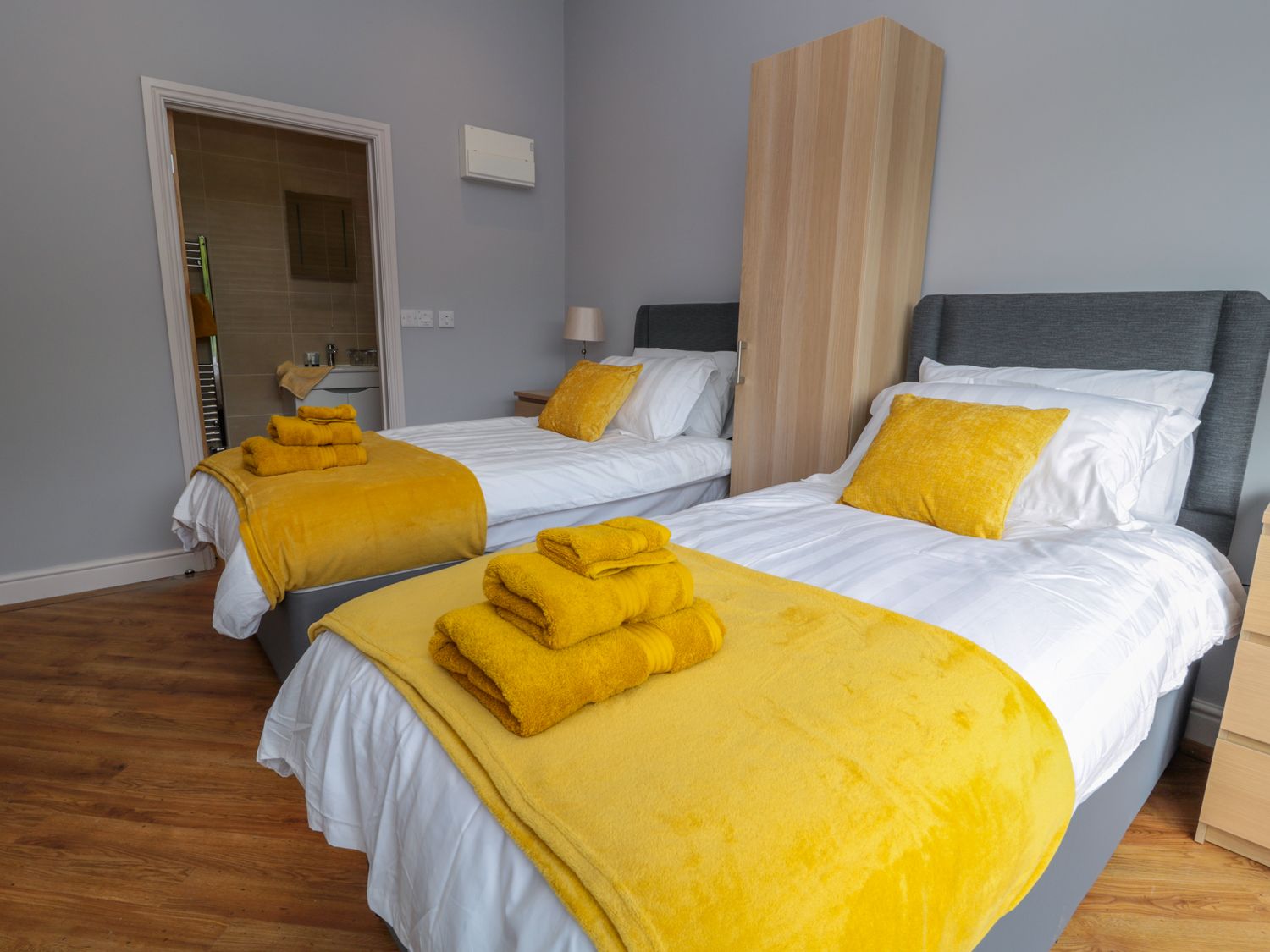 Accomodation Details All ground-floor. Two bedrooms; 1 x double with en-suite with bath and shower, basin and WC, 1 x twin with en-suite shower room with walk-in shower, basin and WC. Open-plan living room with kitchen, dining room and a sitting room.
