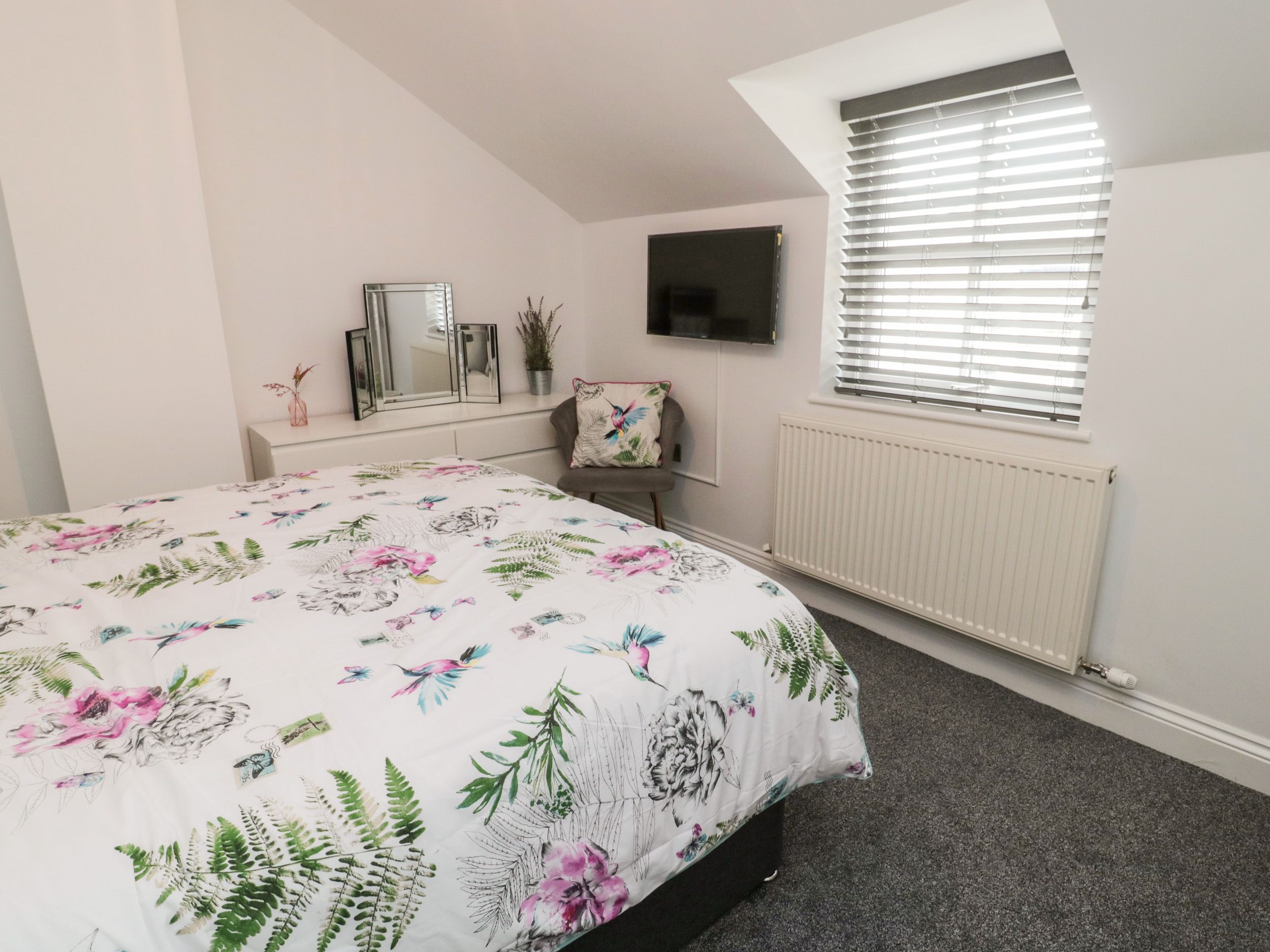 Accomodation Details Duplex apartment, over first and second floors. Three bedrooms with Smart TVs and Alexa devices: 1 x second-floor king-size (zip/link, can be twin on request), 1 x second-floor king-size, 1 x single. Second-floor bathroom with bath, handheld shower, walk-in shower, basin, heated towel rail, and WC. First-floor open-plan living space with kitchen, dining area and sitting area with gas fire