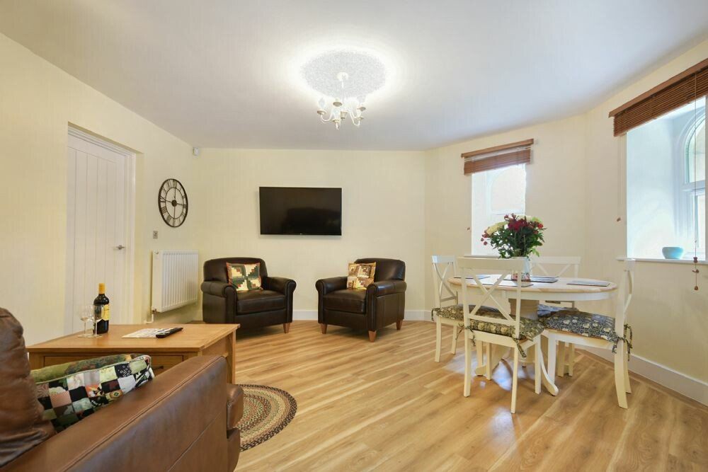 Accomodation Details Single-storey. Two bedrooms: 1 x double, 1 x twin with TV. Bathroom with bath, shower over, basin, heated towel rail and WC. Kitchen. Open-plan living space with dining area and sitting area