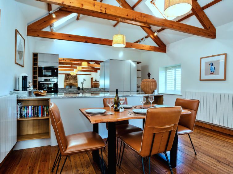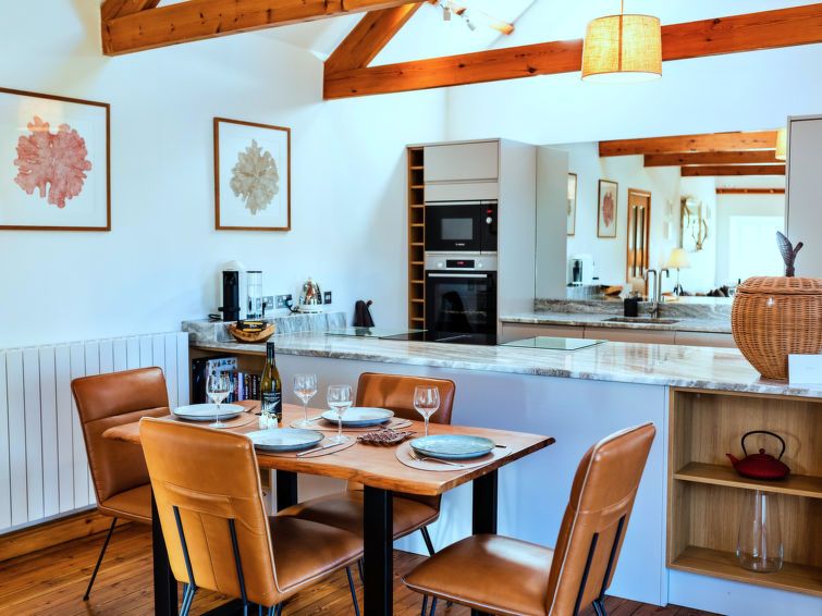 "The Old School", 4-room house 100 m2. Object suitable for 4 adults. Living room with open-hearth fireplace. 1 room with 1 french bed. 1 room with 2 beds. Playroom. Kitchen (oven, dishwasher, toaster, kettle, microwave, freezer, electric coffee machine). Shower/WC. Terrace. Barbecue.