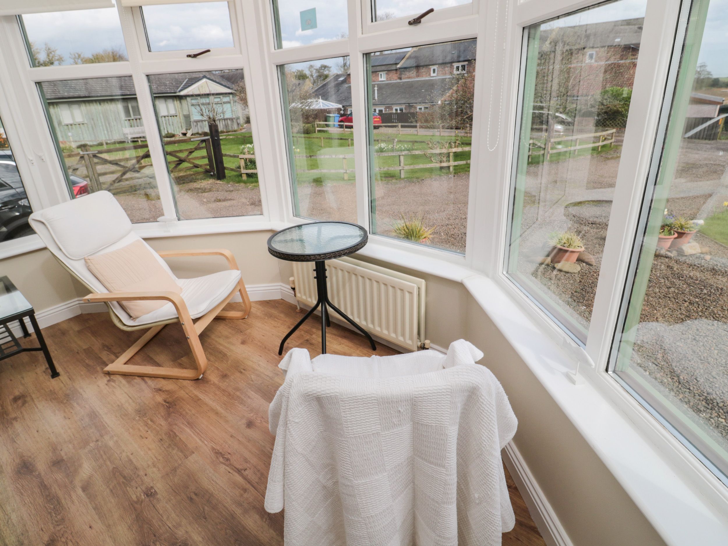 Accomodation Details All-ground-floor. Three bedrooms: 1 x double with en-suite shower, basin, heated towel rail and WC, 1 x twin with TV, 1 x twin. Open-plan living space with kitchen, dining area and sitting area. Sun Room