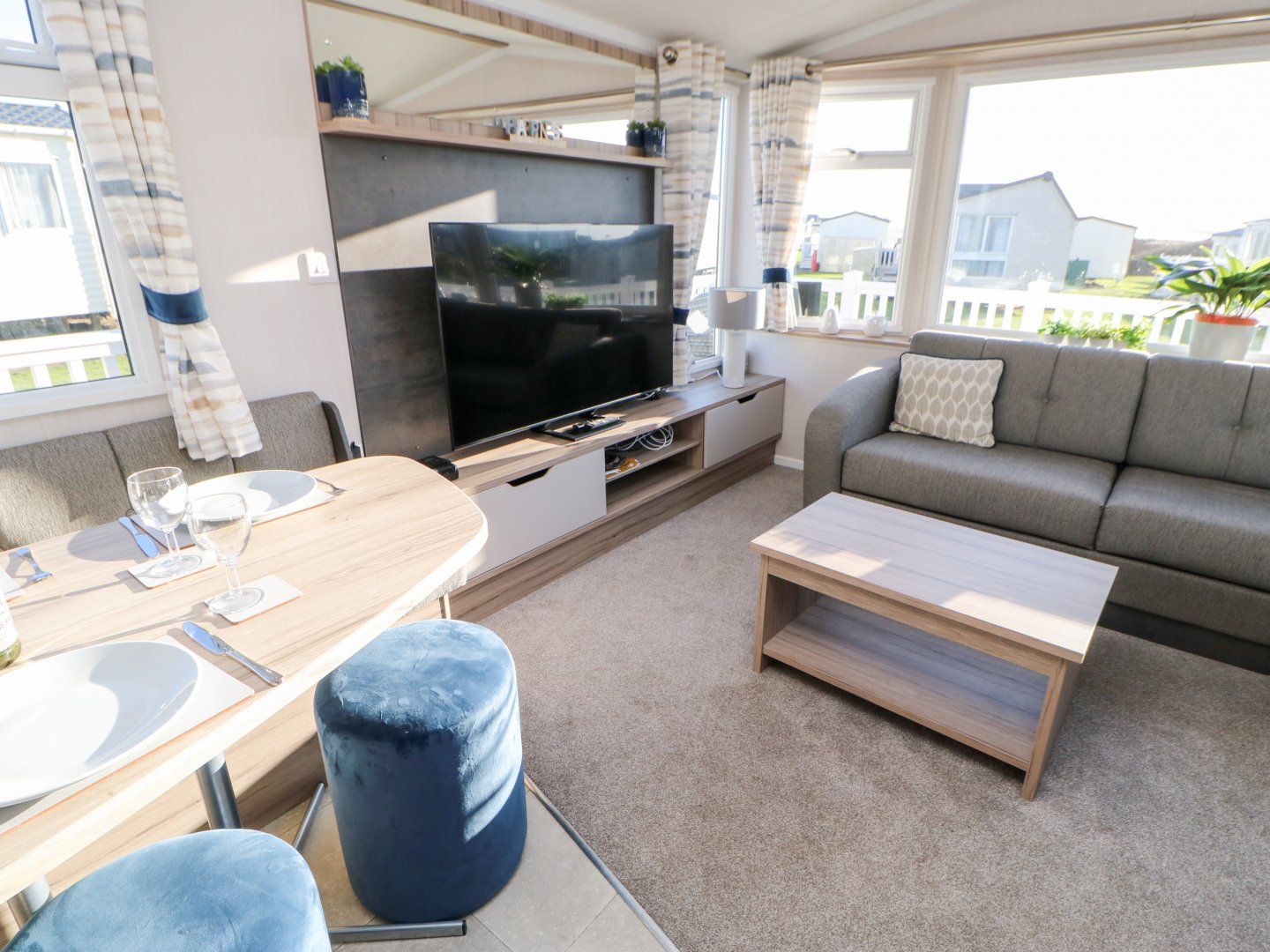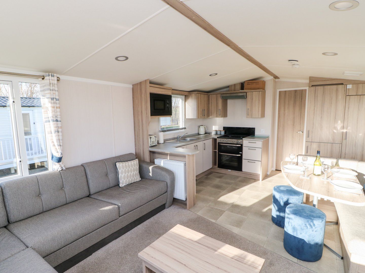 Amenities Gas central heating. Electric oven, gas hob, microwave, fridge/freezer, dishwasher. Smart TV, WiFi. Fuel and power inc. in rent. Bed linen and towels inc. in rent. Off-road parking to the front. Enclosed, wrap-around decked veranda with furniture. One well-behaved dog welcome. Sorry, no smoking. Shop 0.2 miles, pub on-site, beach 0.8 miles. Note: Ramp access to the lodge. Note: Guests have access to a range of on-site facilities, including a swimming pool, laundrette, clubhouse, and shop, some of which follow seasonal opening times. Note: A highchair and travel cot can be requested from reception