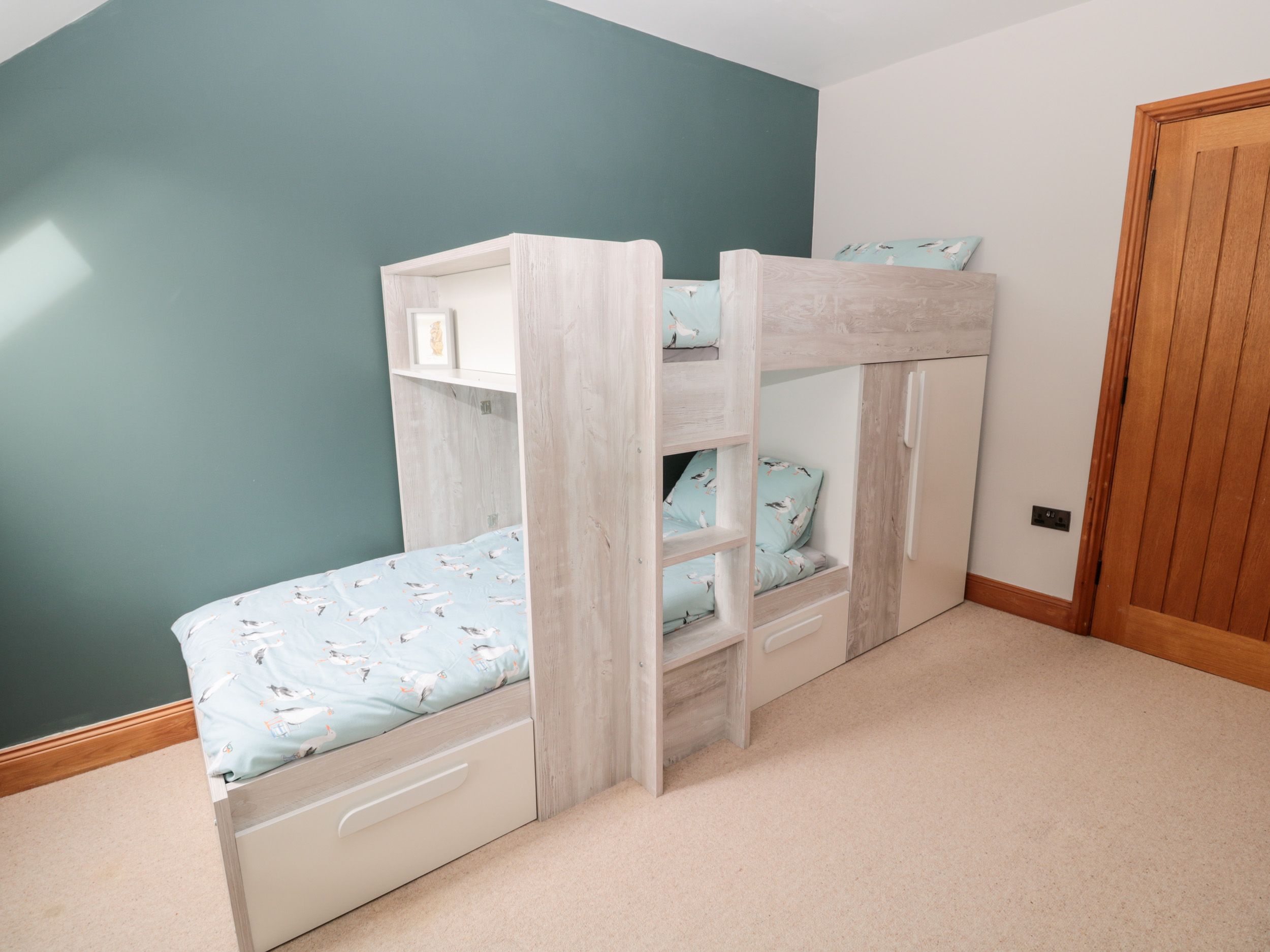 Accomodation Details 1x king-size bedroom with en-suite/shower. 1x double bedroom with en-suite/shower. 1 x single bunk beds. Open plan living area with kitchen, dining area and sitting area. Living room with wood burning stove. Downstairs WC. Cloakroom. Family bathroom. Utility room with separate washing machine and tumble dryer