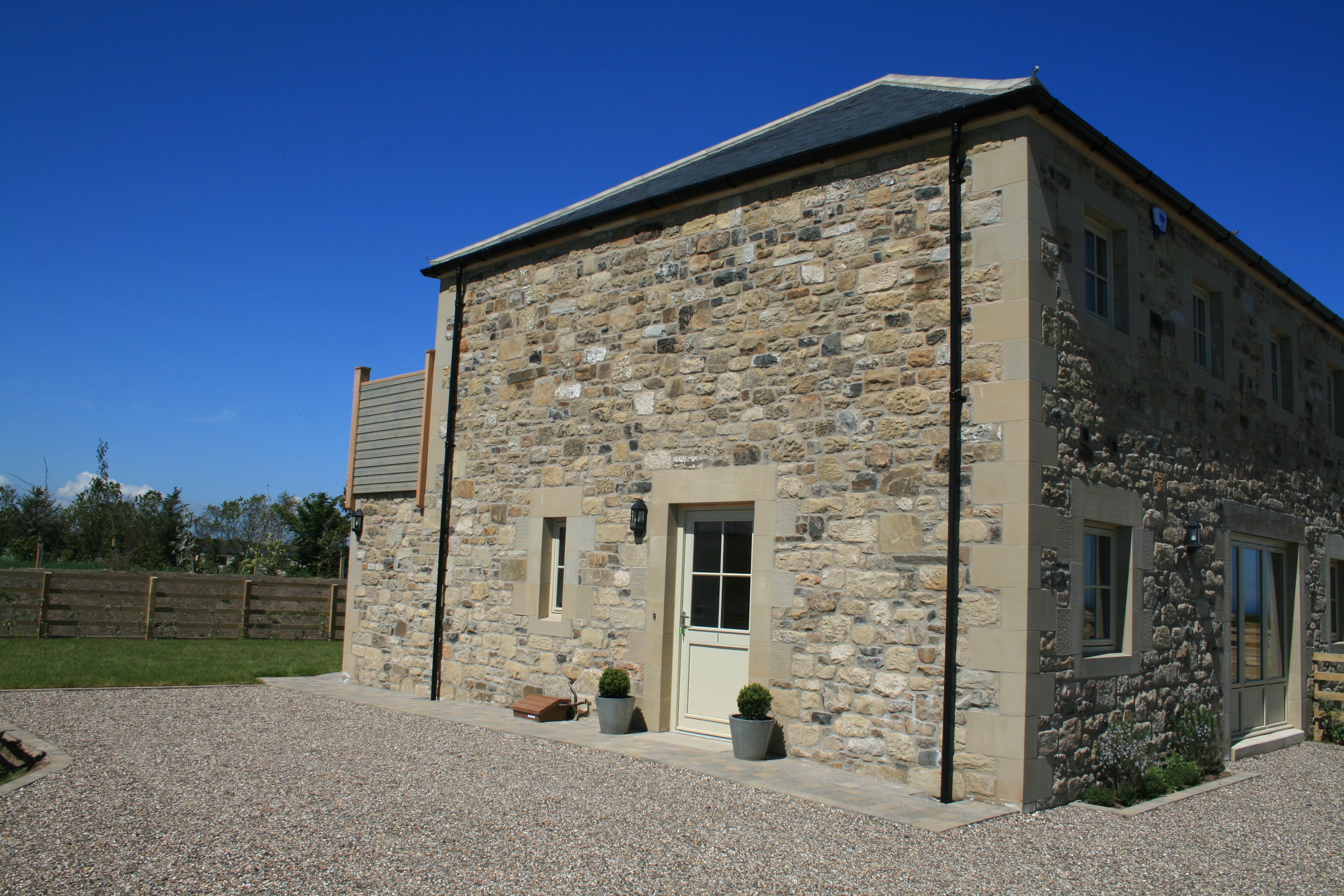 Accomodation Details Reverse-level. Two ground-floor bedrooms: 1 x king-size with Jack-and-Jill access to ground-floor bathroom with bath, walk-in shower, basin and WC, 1 x twin. First-floor open-plan living space with kitchen, dining area and sitting area with gas stove-effect fire. Utility